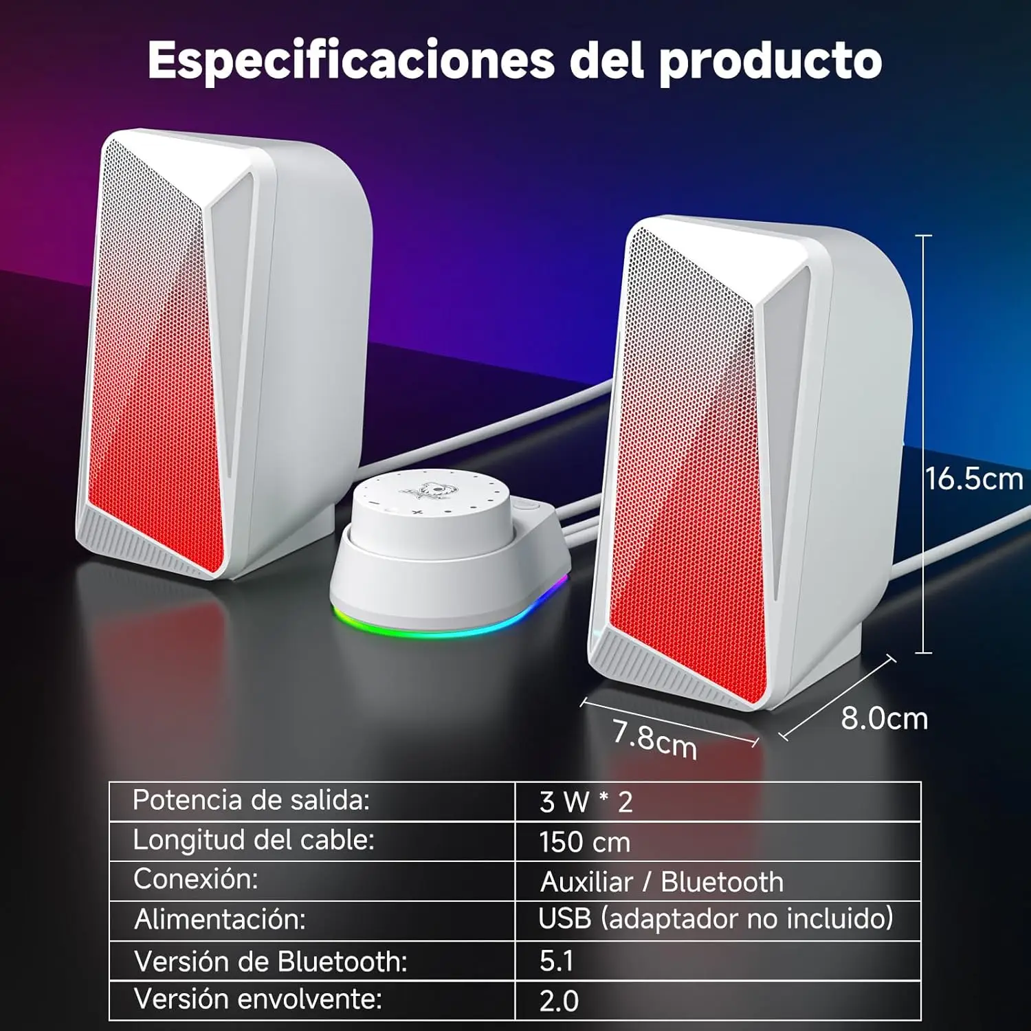 must, 3,5 mm abisisend, USB toide, värviline LED-valgustus. 10w ja 80Hz