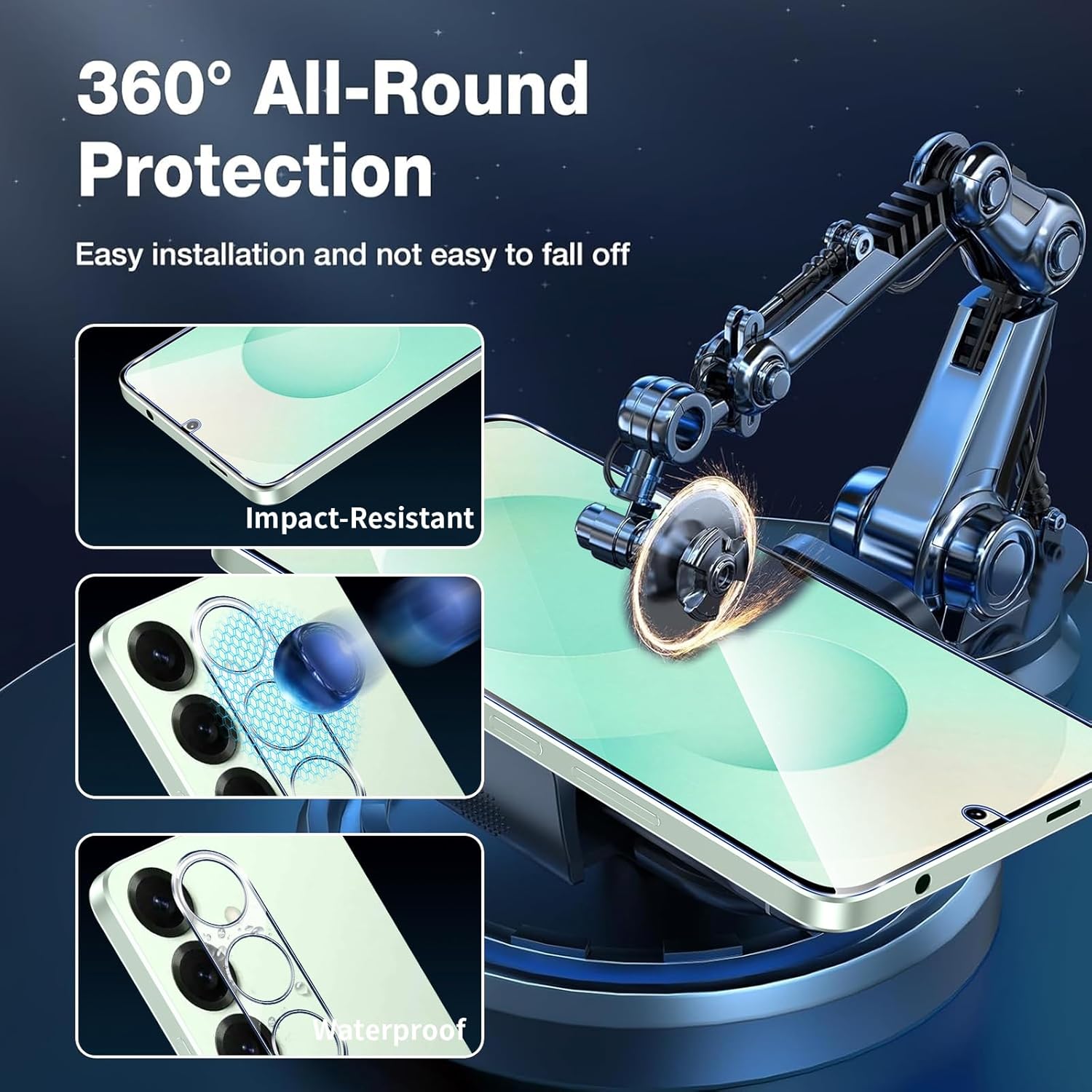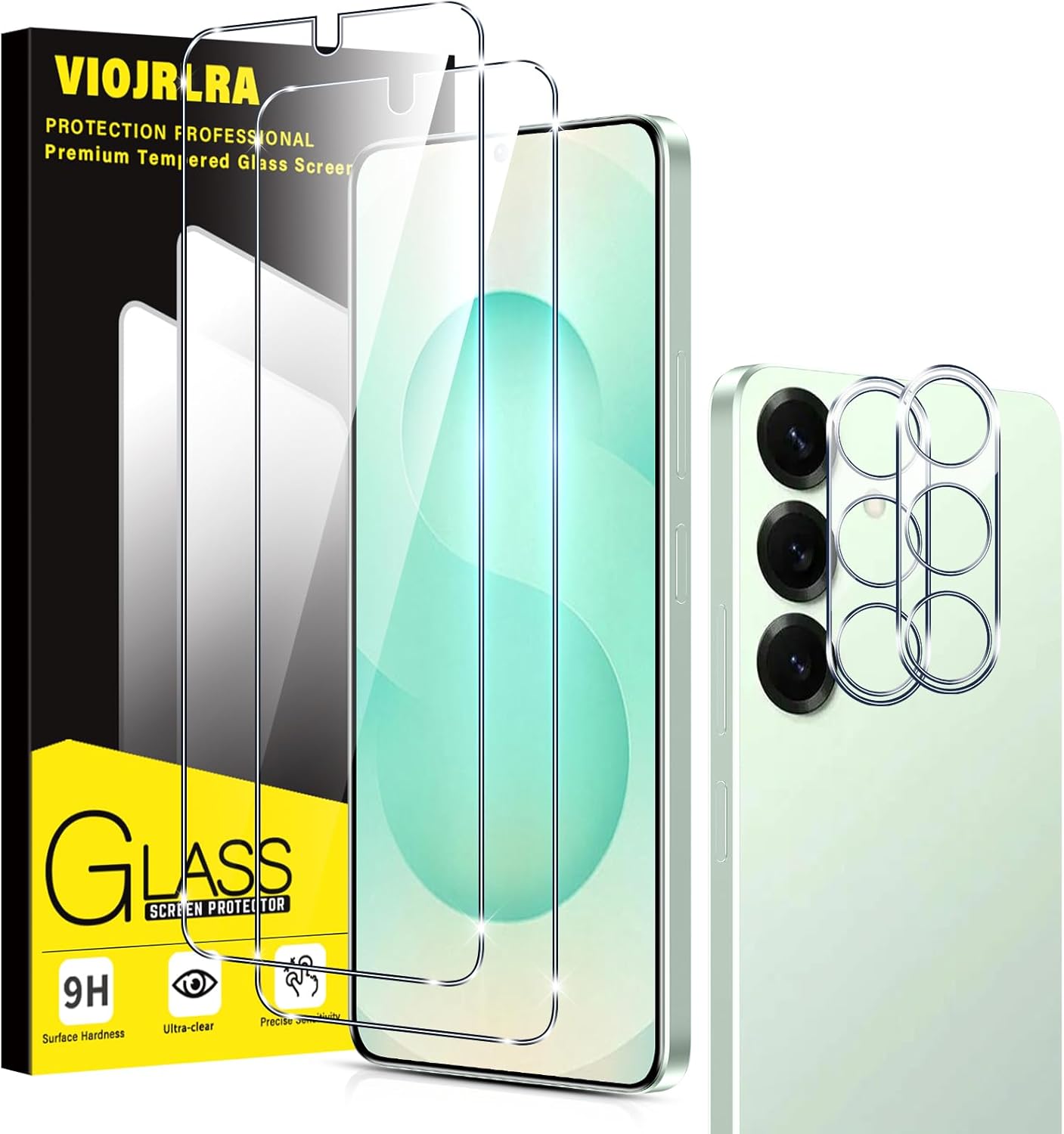 This 2+2 pack for the Samsung Galaxy S25 Plus 5G includes two 9H hardness tempered glass screen protectors and two rear camera lens protectors, featuring HD clarity and bubble-free application for ultra-resistant protection.
