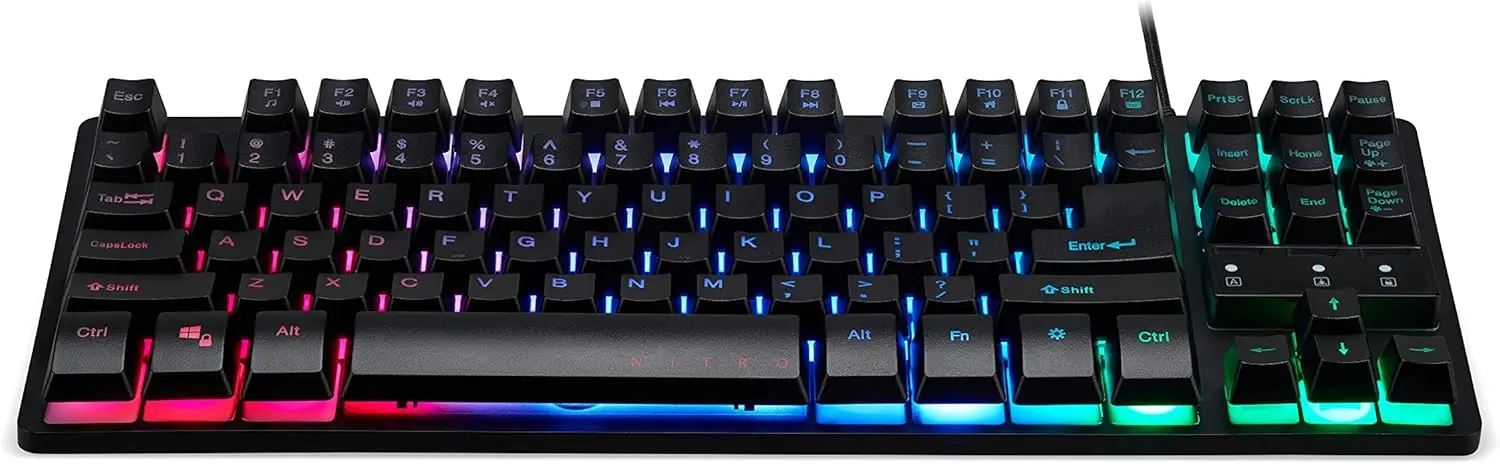 The Acer Nitro NKW120 is a black USB gaming keyboard featuring an ITA QWERTY layout, durable membrane switches, and integrated multimedia keys for easy control.
