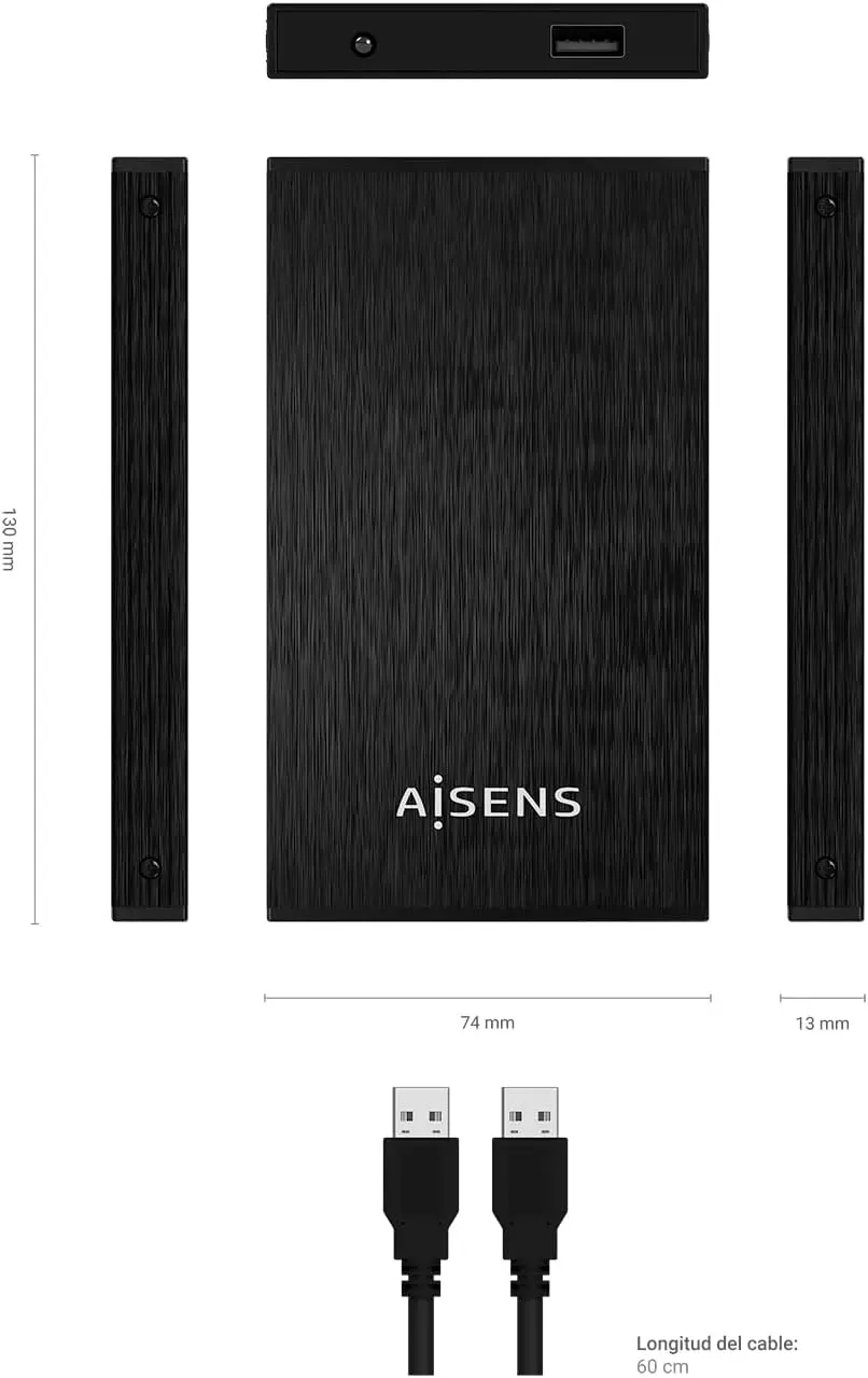 AISENS ASE-2523B (Black) – an affordable 2.5" external hard drive enclosure supporting up to 9.5mm SATA drives with USB 3.0/3.1 Gen1 connectivity for data transfer speeds up to 5 Gbps.