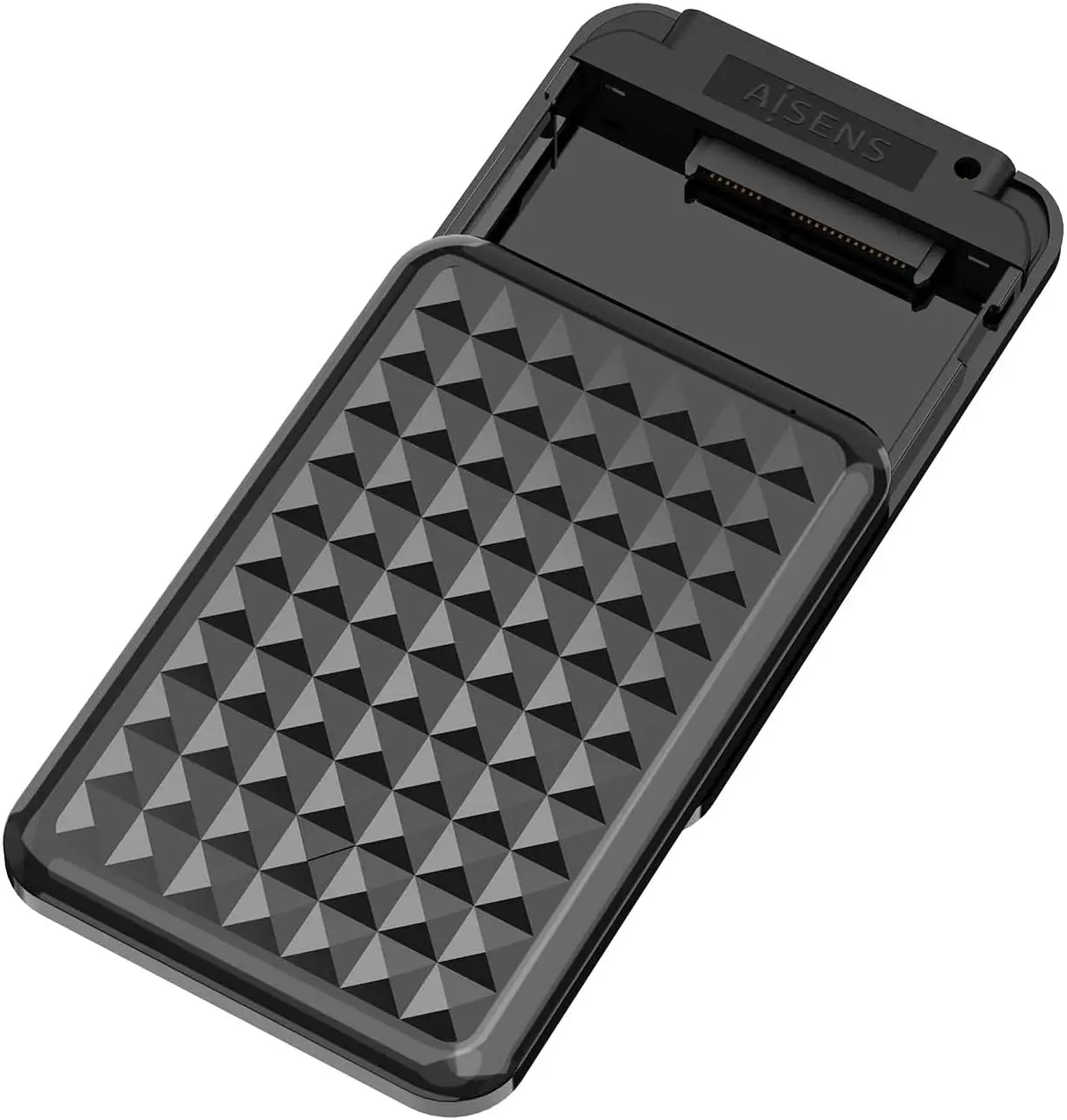 The AISENS is a sleek black external enclosure for 2.5-inch SATA drives up to 9.5mm thick, featuring high-speed USB 3.1 Gen 1 connectivity and easy setup.