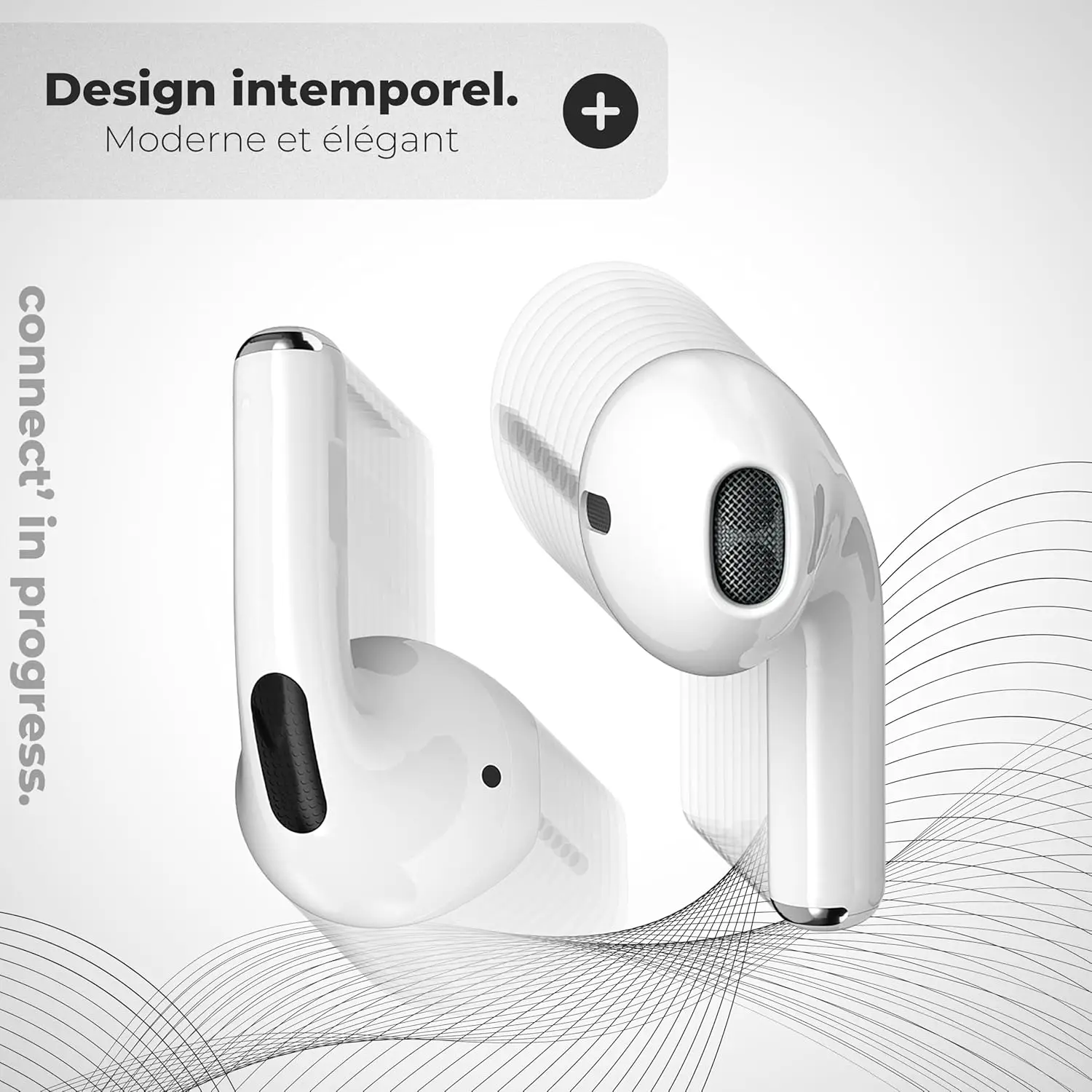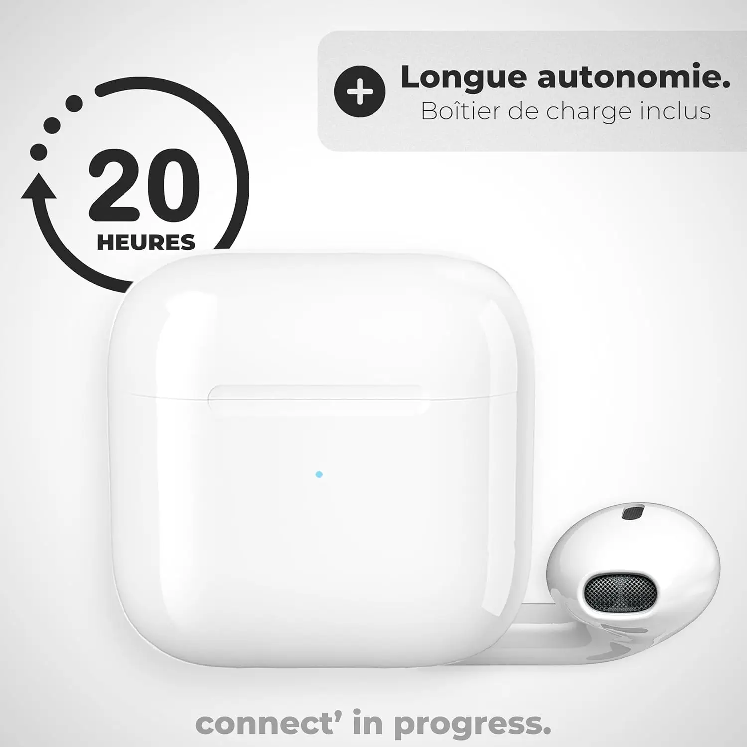 APM 200026 juhtmevabad Bluetooth-kõrvaklapid (Valge) – laadimiskarbi ja integreeritud juhtnuppudega stereoklapid, mis pakuvad selget heli ja ühilduvad sujuvalt arvutite, nutitelefonide ning tahvelarvutitega.