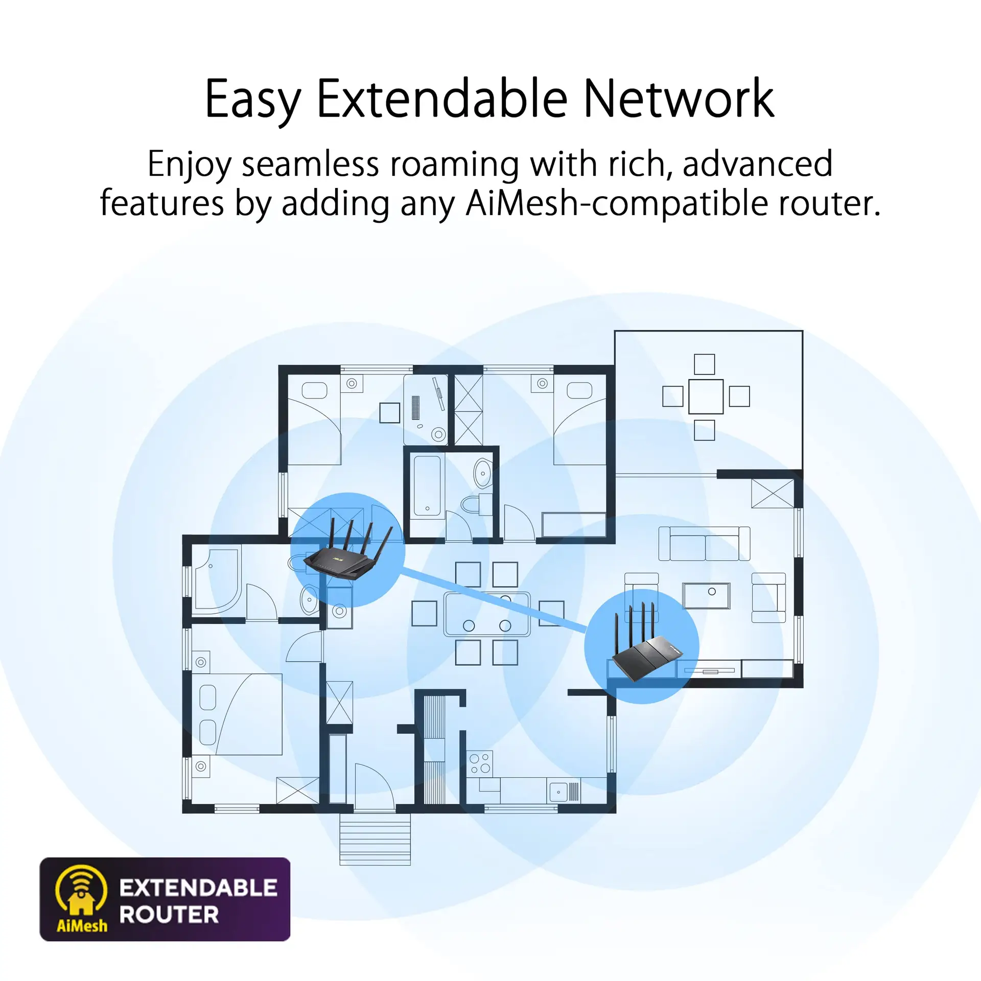Asus RT-AX53U AX1800 Kodu/Kontori ruuter, WiFi 6, Gigabit, neljatuumane protsessor, USB, AiProtection