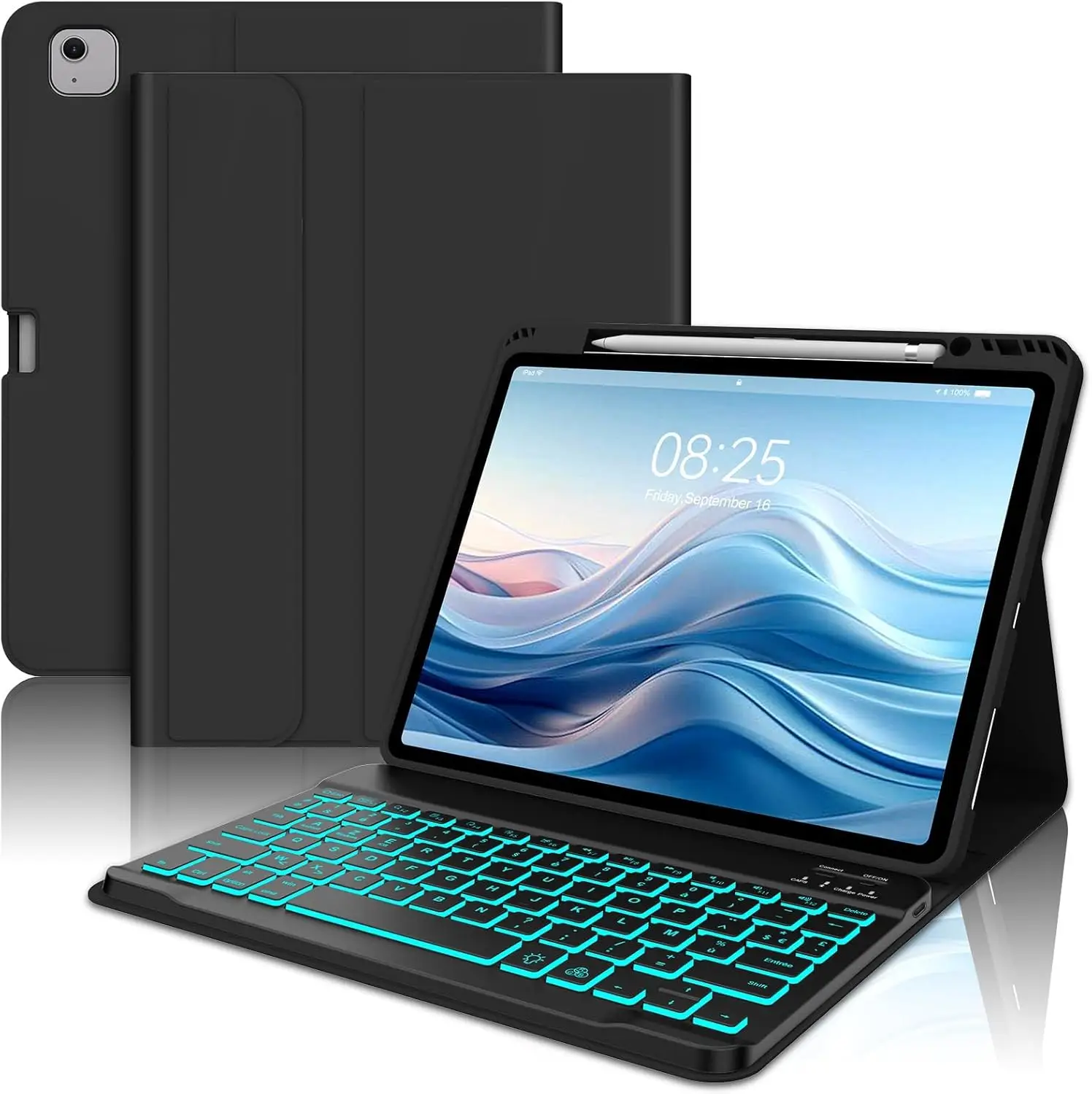 AVNICUD klaviatuurikorpus iPad Air 11″ (2024/2025 M2/M3) ja iPad Air 5.-/4. põlvkonnale 10.9″ ning iPad Pro 11″ (4/3/2/1), sisaldab taustvalgustusega French AZERTY klaviatuuri ja kaitsehoidikut — mugav lahendus trükkimiseks ja igapäevaseks kasutamiseks.