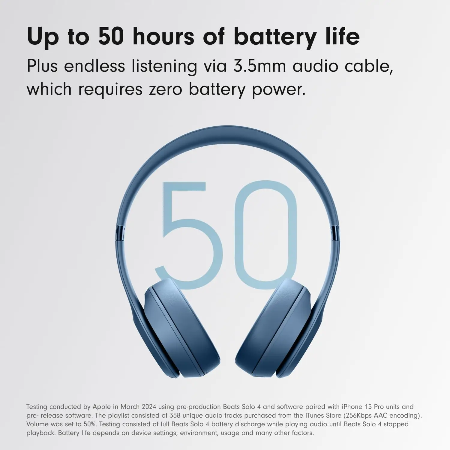 Beats Solo 4 kõrvaklapid. Komplektis veel tugev tekstiilist kattega Beatsi karp klappidele, Aux juhe ja USB-C juhe. Tootel Apple Warranti kuni 03.11.2026.