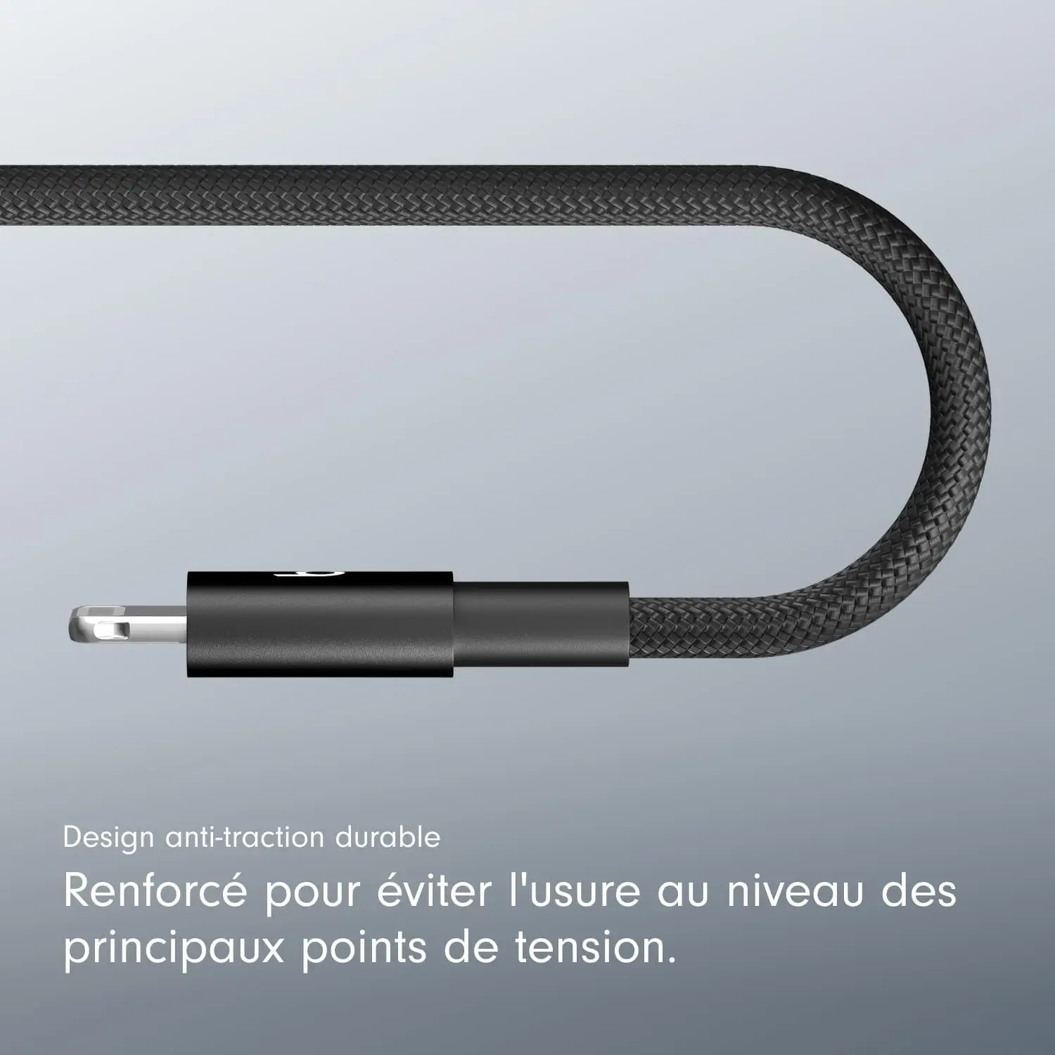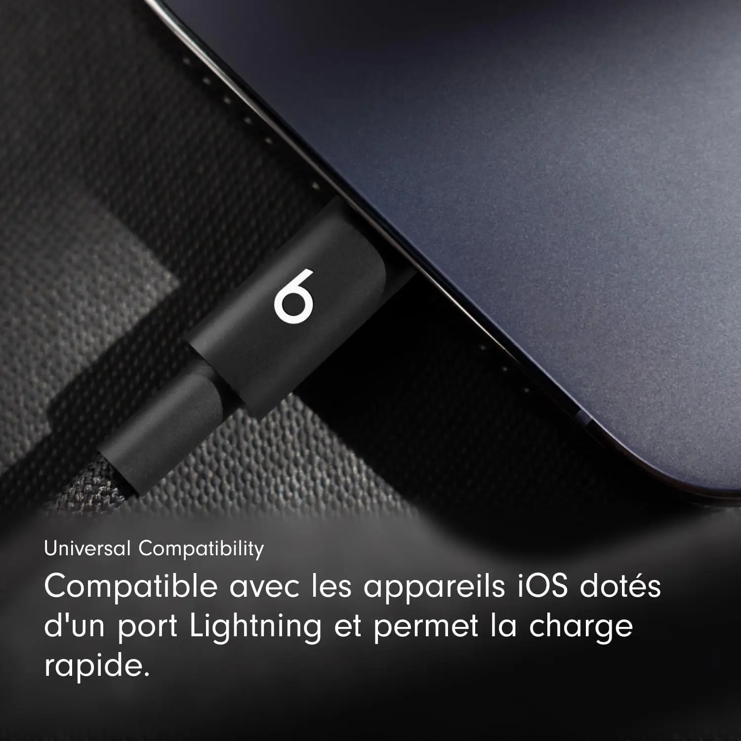 Beats USB-C to Lightning Short Woven Cable (20cm) – a durable, tangle-free intense black cable designed for fast charging and syncing Apple Lightning port devices.