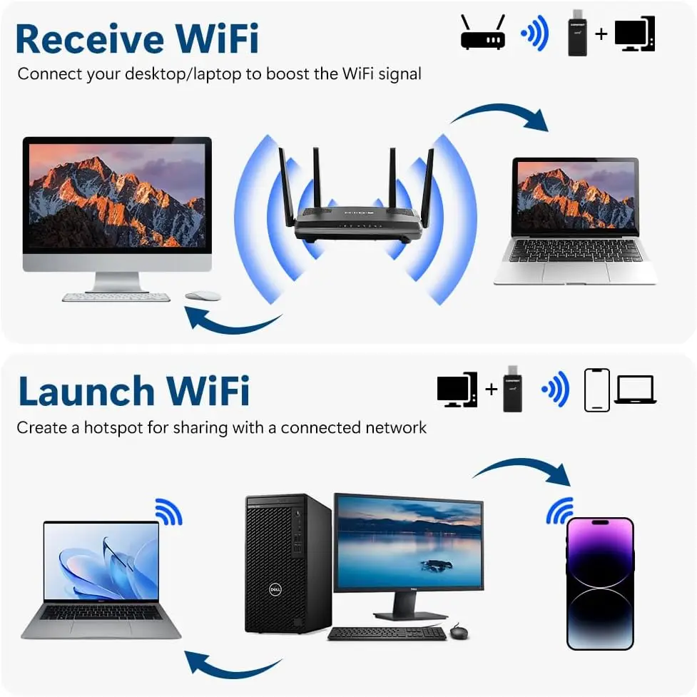 OFFCUP USB WiFi 6 adapter – dual-band (2.4 GHz/5.8 GHz) USB wireless stick for PCs and laptops, providing fast and stable connectivity, supporting the WPA3 security standard and compatible with Windows 10/11.