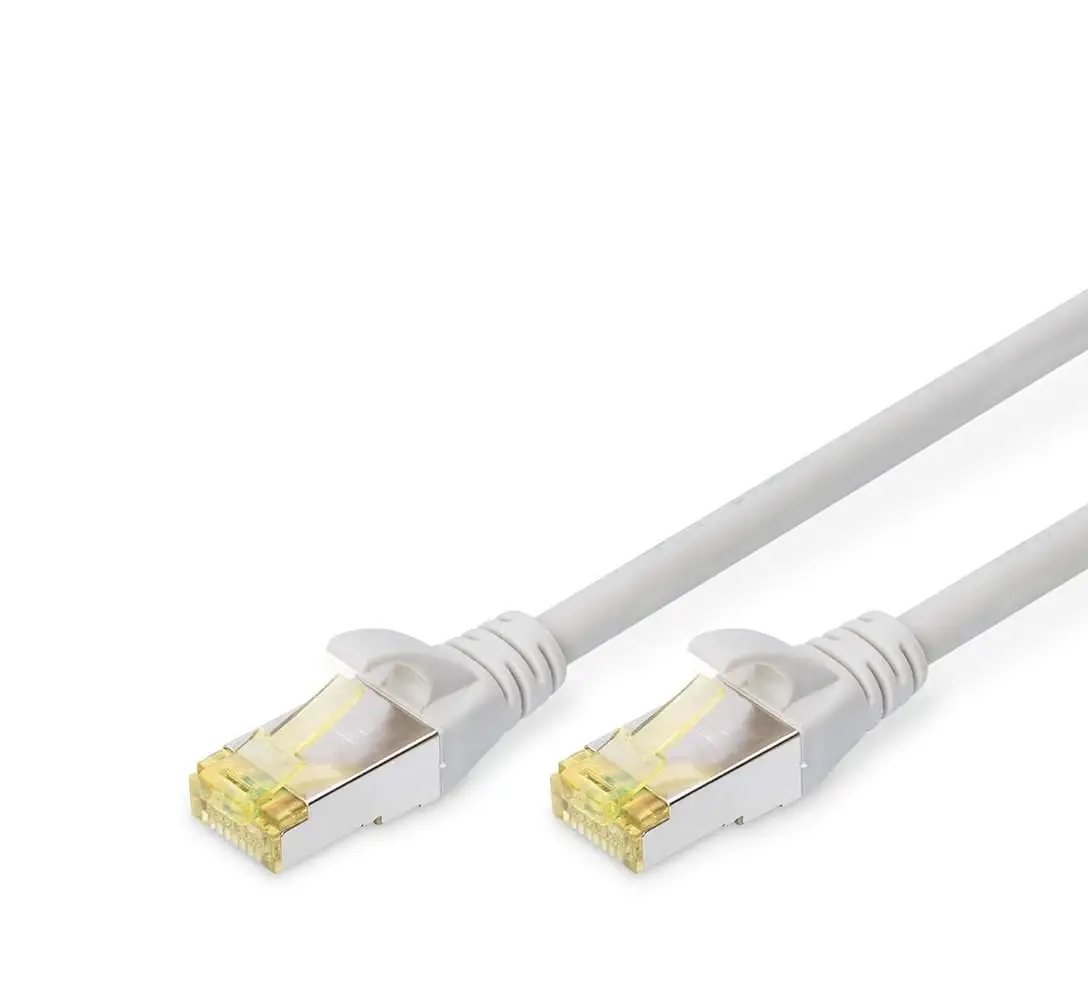 Digitus Cat 6A Network Cable (0.5m) – a short grey S/FTP shielded 10Gbps Ethernet cable featuring an LSZH jacket and snagless RJ45 connectors with strain relief.