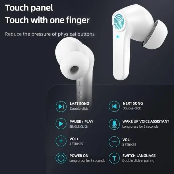 DNSEA Wireless Earbuds (White) – Bluetooth 5.3 in-ear headphones featuring IPX6 water resistance, deep bass, 35H total playtime, and seamless compatibility with the latest iPhone 17 and 16 series.