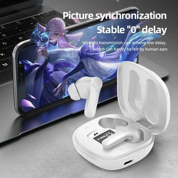 DNSEA juhtmevabad kõrvaklapid (Valge) – Bluetooth 5.3 ja IPX6 veekindlusega kõrvasisesed klapid, mis pakuvad sügavat bassi, kuni 35-tunnist mänguaega ning ühilduvad täielikult uusimate iPhone 17 ja 16 seeriatega.