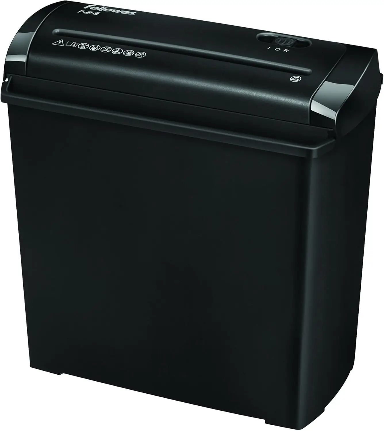 Fellowes PowerShred P-25s – compact, reliable paper shredder that cross-cuts up to 6 sheets at once, perfect for secure document disposal at home or in the office.