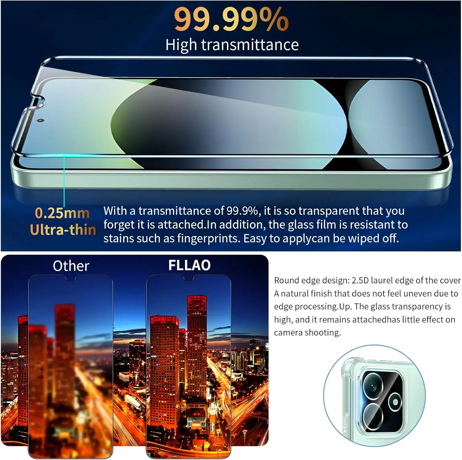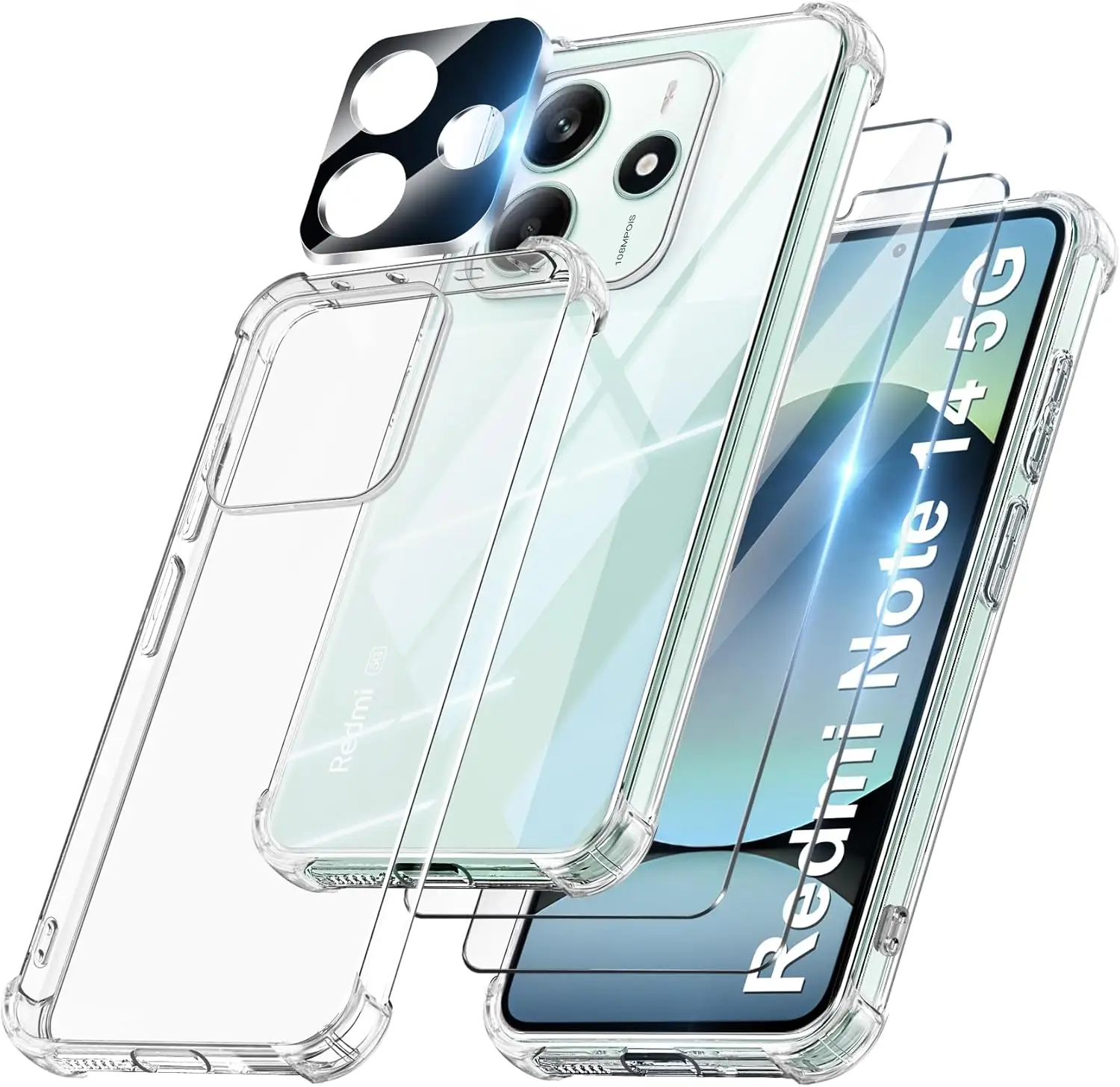 FLLAO 4-in-1 Case for Xiaomi Redmi Note 14 5G (Transparent) – an anti-shock case with built-in air cushions, including 2 screen protectors and 1 camera lens protector.