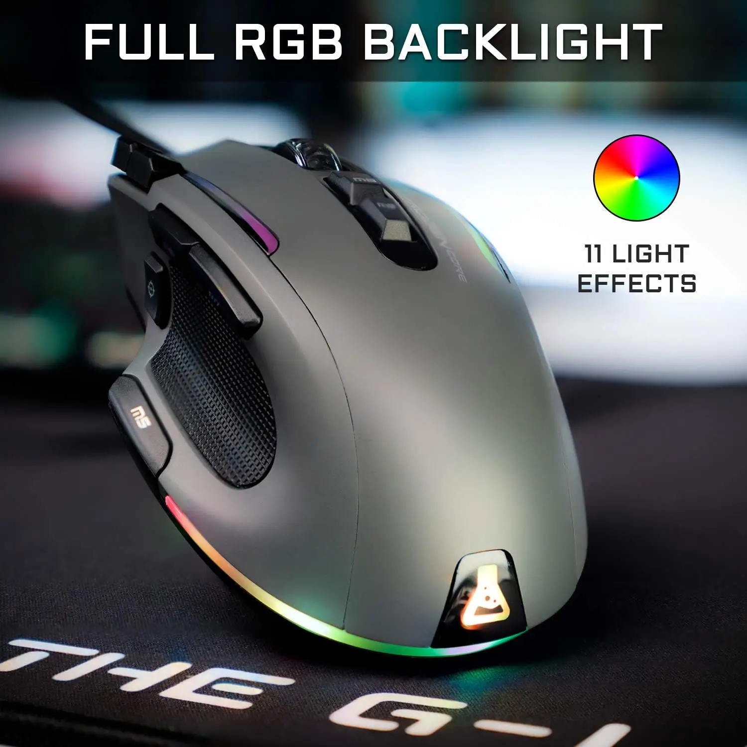 The G-Lab Kult Nitrogen Core is a high-performance wired gaming mouse featuring a 10,000 DPI Avago optical sensor, 1000 Hz polling rate, and up to 20G acceleration for ultimate precision. With 11 programmable buttons, customizable RGB lighting, and adjustable weight (105–120 g), it offers full control in every game. The ergonomic shape with soft-touch coating and silicone side grips ensures comfort during long gaming sessions. Compatible with PC, Xbox One, and PS4/PS5.