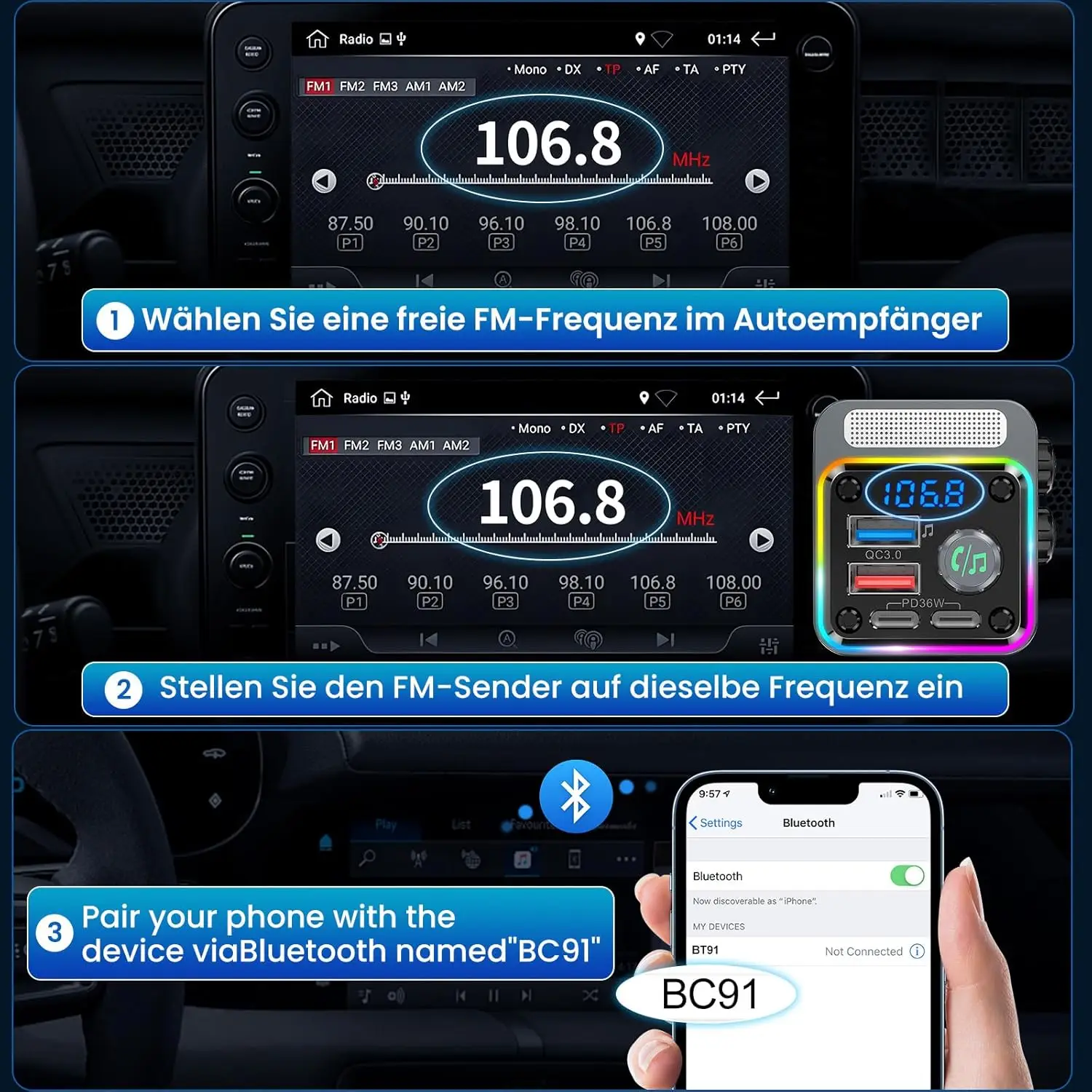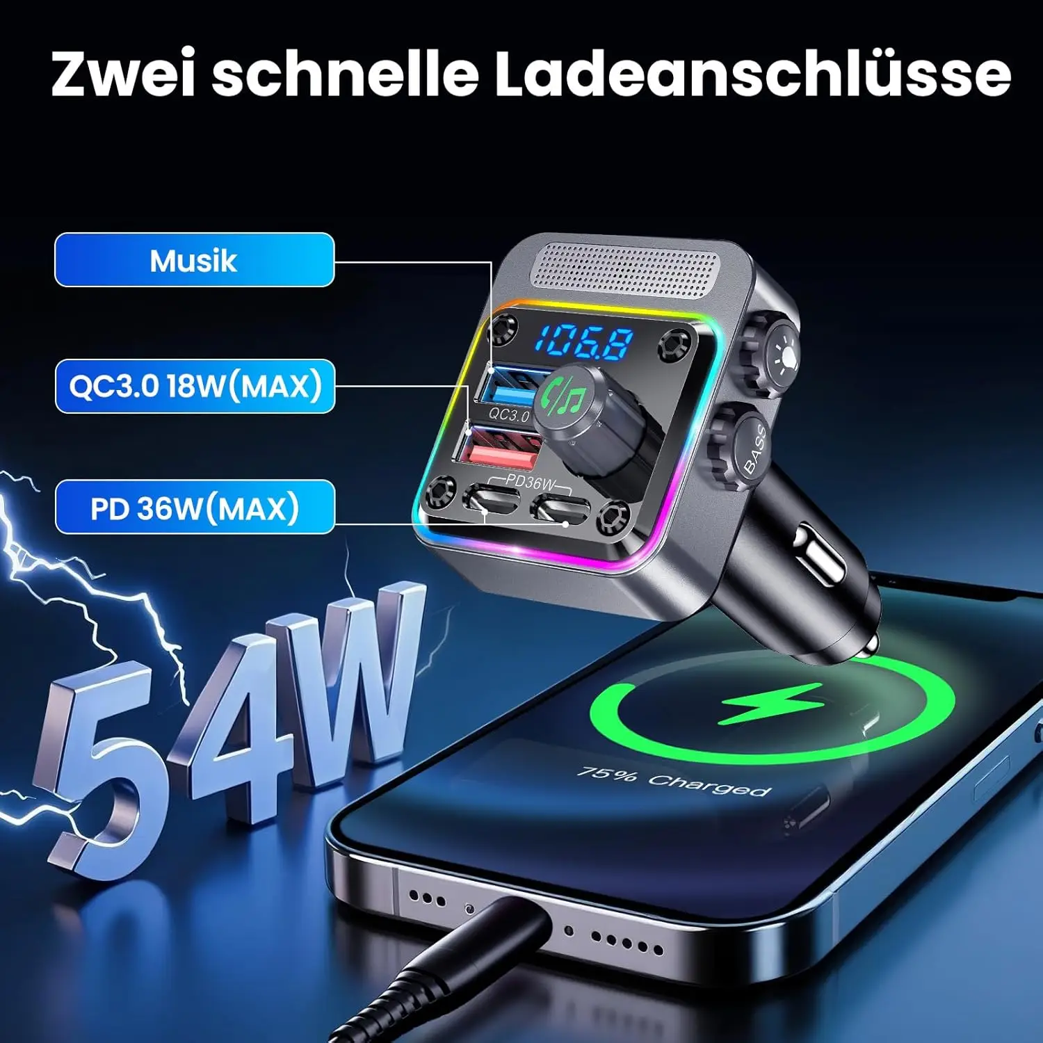 Gizmovine Bluetooth auto FM-saatja, käed-vabad Bluetooth-adapter,