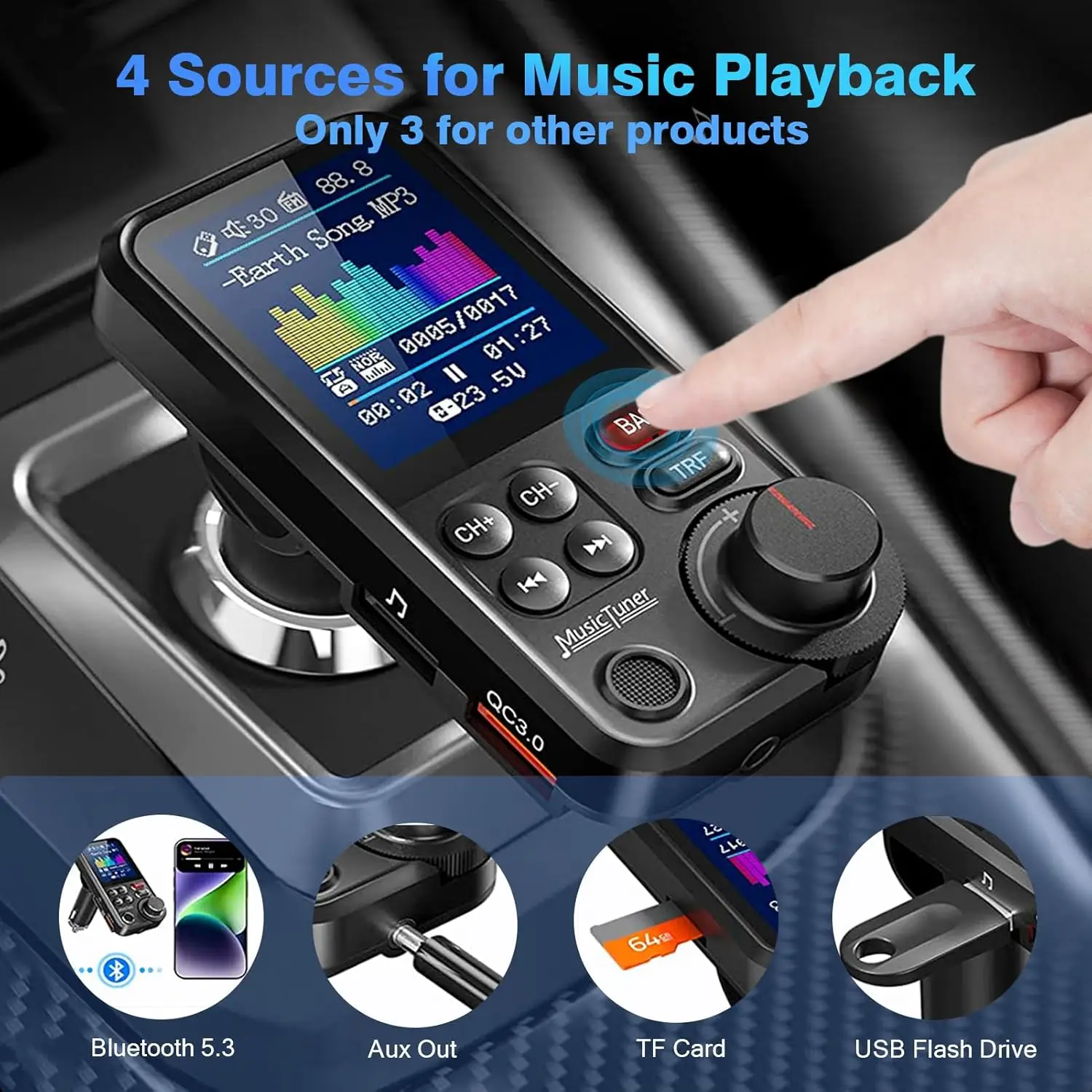 1,8-tollise ekraani/mikrofoni/QC3.0 kiirlaadijaga, 4-ühes audiopleier, toetab USB/TF/BT/Aux.