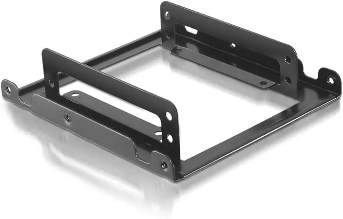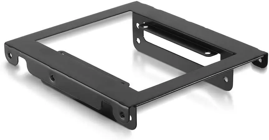 Nanocable 10.99.0002 – a durable grey metallic mounting bracket designed to fit a 2.5-inch HDD or SSD into a standard 3.5-inch internal computer drive bay.
