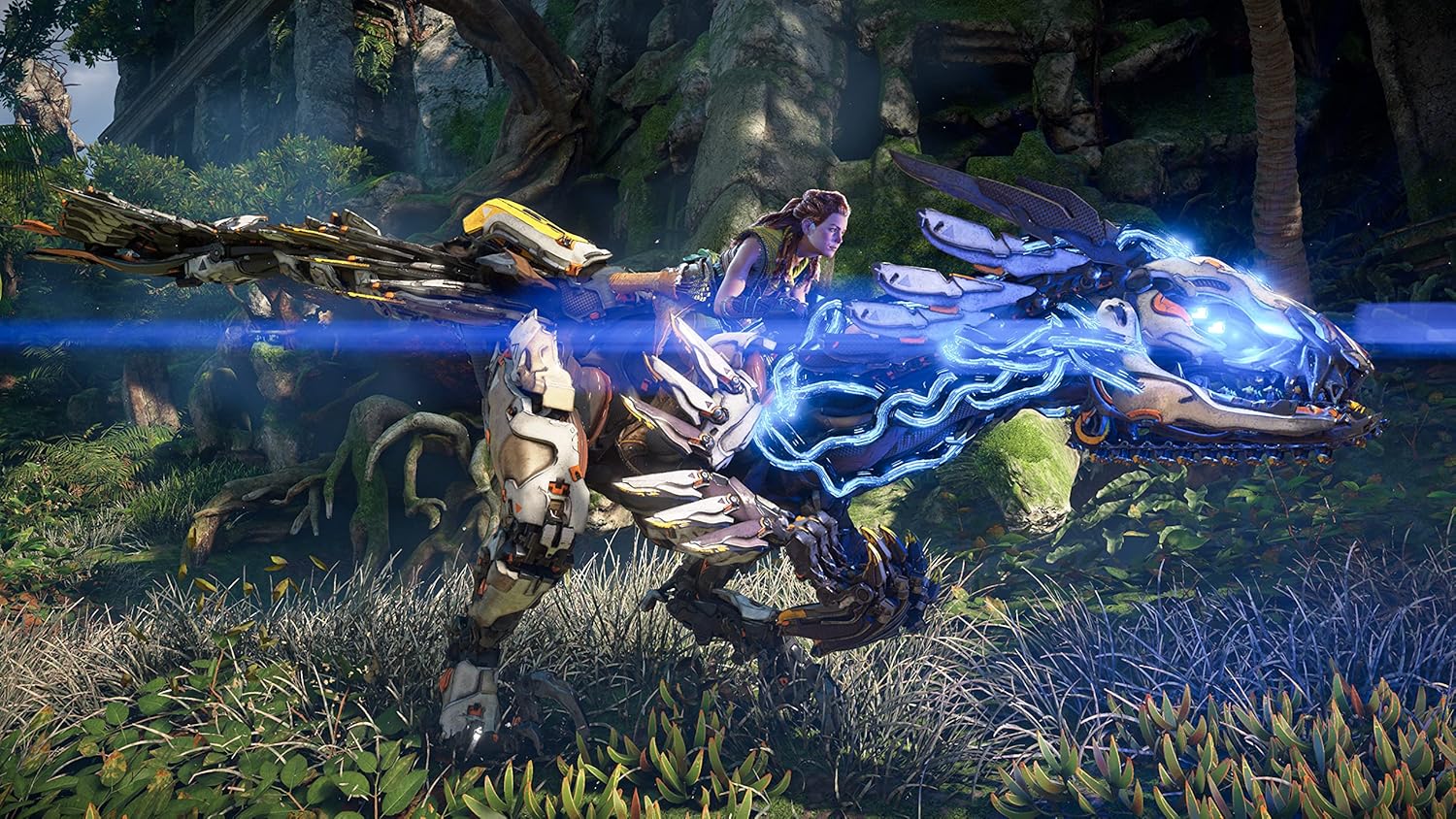 Horizon: Forbidden West – avatud maailmaga action-RPG PS5 mäng, milles kontrollid Aloy’d post-apokalüptilises maailmas uurides uusi maid, võideldes robot-vastastega ja lahendades müsteeriumi, miks biosfäär on halvenemas, ning nautides rikkalikku seiklust ja detailset keskkonda.