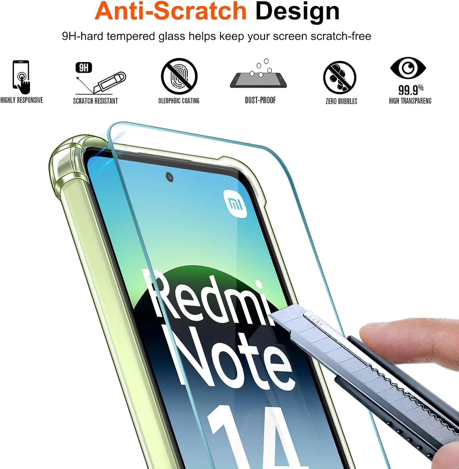 ivoler 3-in-1 pack for the Xiaomi Redmi Note 14 4G features a transparent, anti-shock soft TPU silicone case specifically tailored for the 4G model, providing reliable protection against impacts and daily wear.
