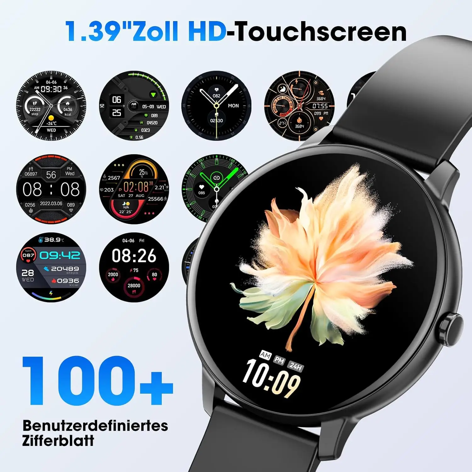 Joautrial Smartwatch – Bluetooth-kõnede funktsiooniga nutikell meestele ja naistele, 1,39-tolline ekraan koos pulsi- ja unejälgimise ning sammulugejaga, üle 100 spordirežiimi, must värv, ühildub Androidi ja iOS-seadmetega.