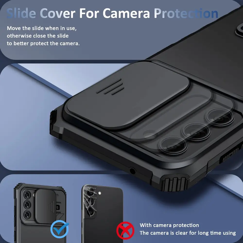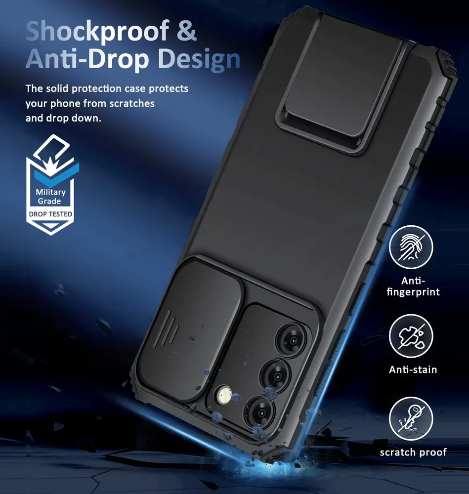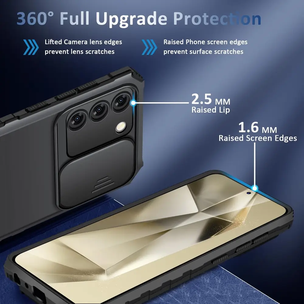 Samsung Galaxy S24 kaitseümbris pakub kaamera kaitset ja libisemiskindlat käepidet, tagades turvalise ja mugava kasutuse. Kõva kest kaitseb telefoni kukkumiste ja kriimustuste eest, samal ajal säilitades stiilse musta välimuse.