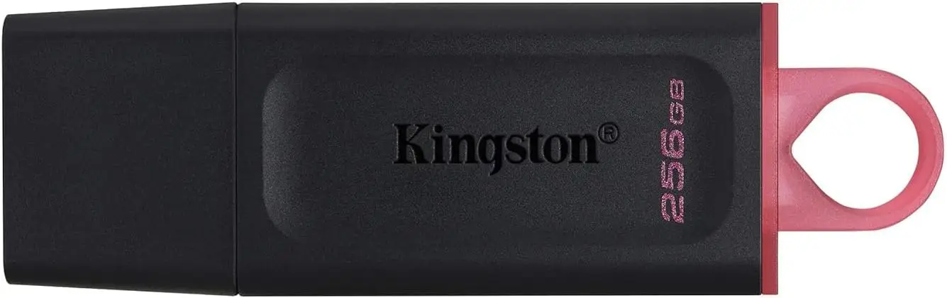 Kingston DataTraveler Exodia (256GB) – practical USB 3.2 Gen 1 flash drive featuring a protective cap and a colorful key ring loop for easy portability, offering fast data transfers in a black finish.