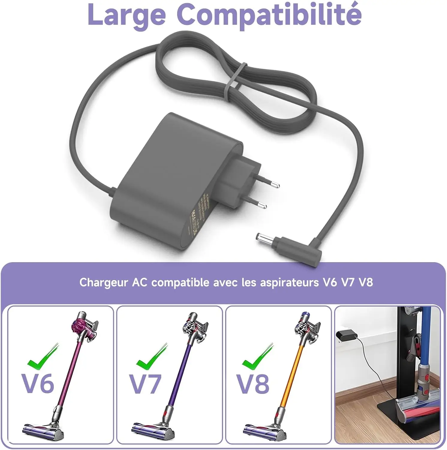 Shefor 26.1 V laadija, laadija, ühildub Dyson V8 V7 V6 laadimiskaabliga, toiteplokk Dyson Animal Fluffy DC58 DC59 DC60 DC61 DC72 SV03 SV04 SV05 SV06 SV09 SV10 SV11 EP5
