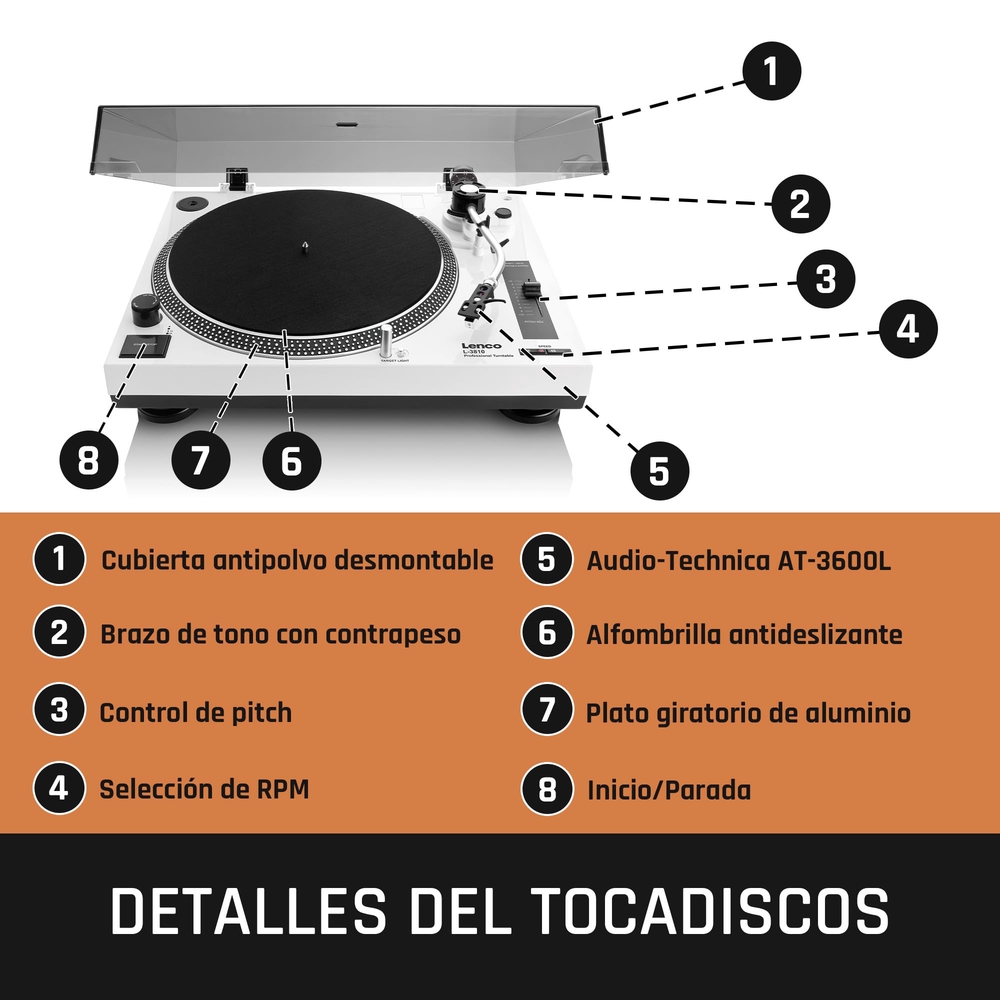 DJ plaadimängija – 33/45 p/min – helikõrguse juhtimine – magnetiline helipüüdja süsteem – nõelavalgustus – helikõrguse kontroll