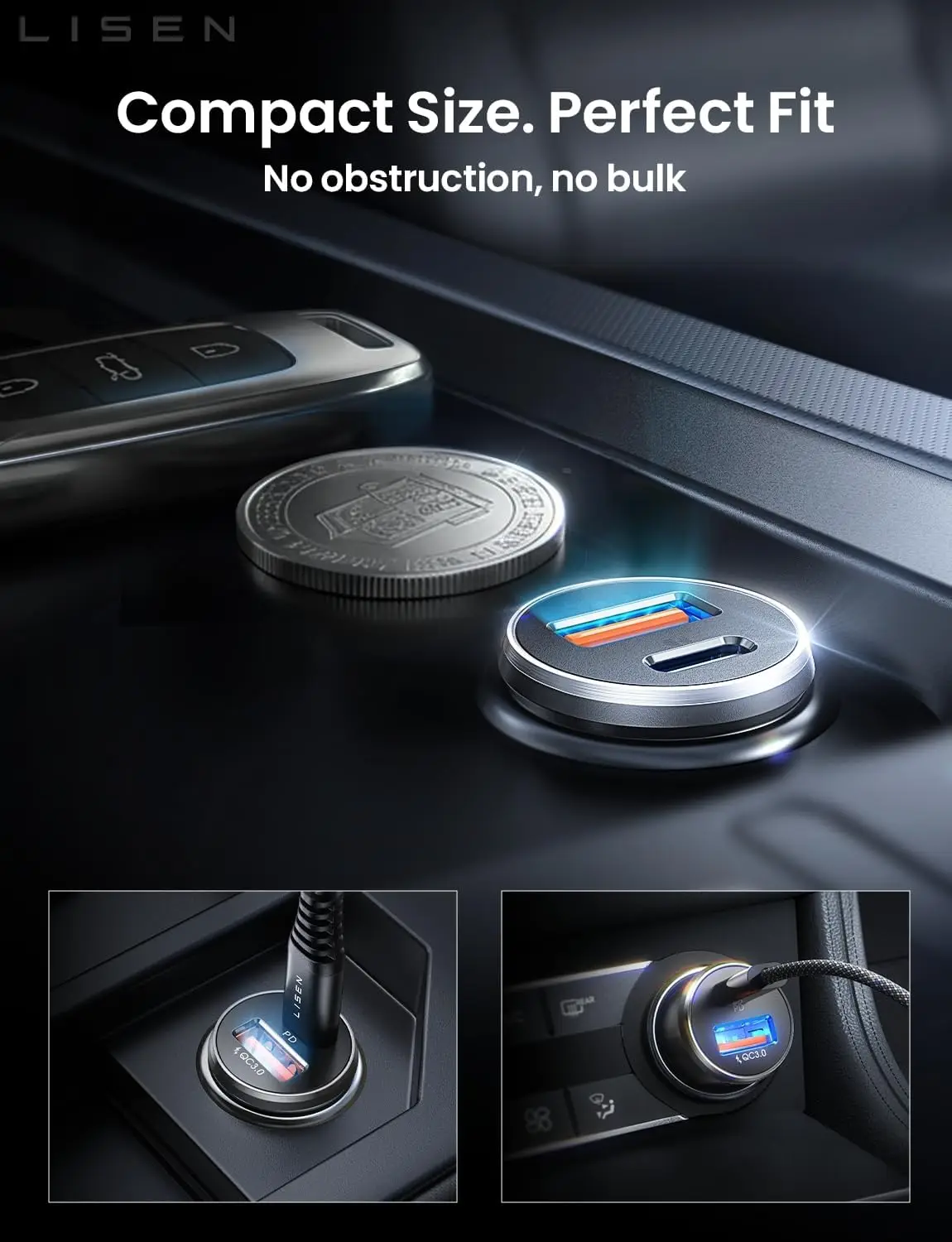 LISEN kahena pakk USB-C autolaadija adapter 48W [miniatuurne ja metallist]