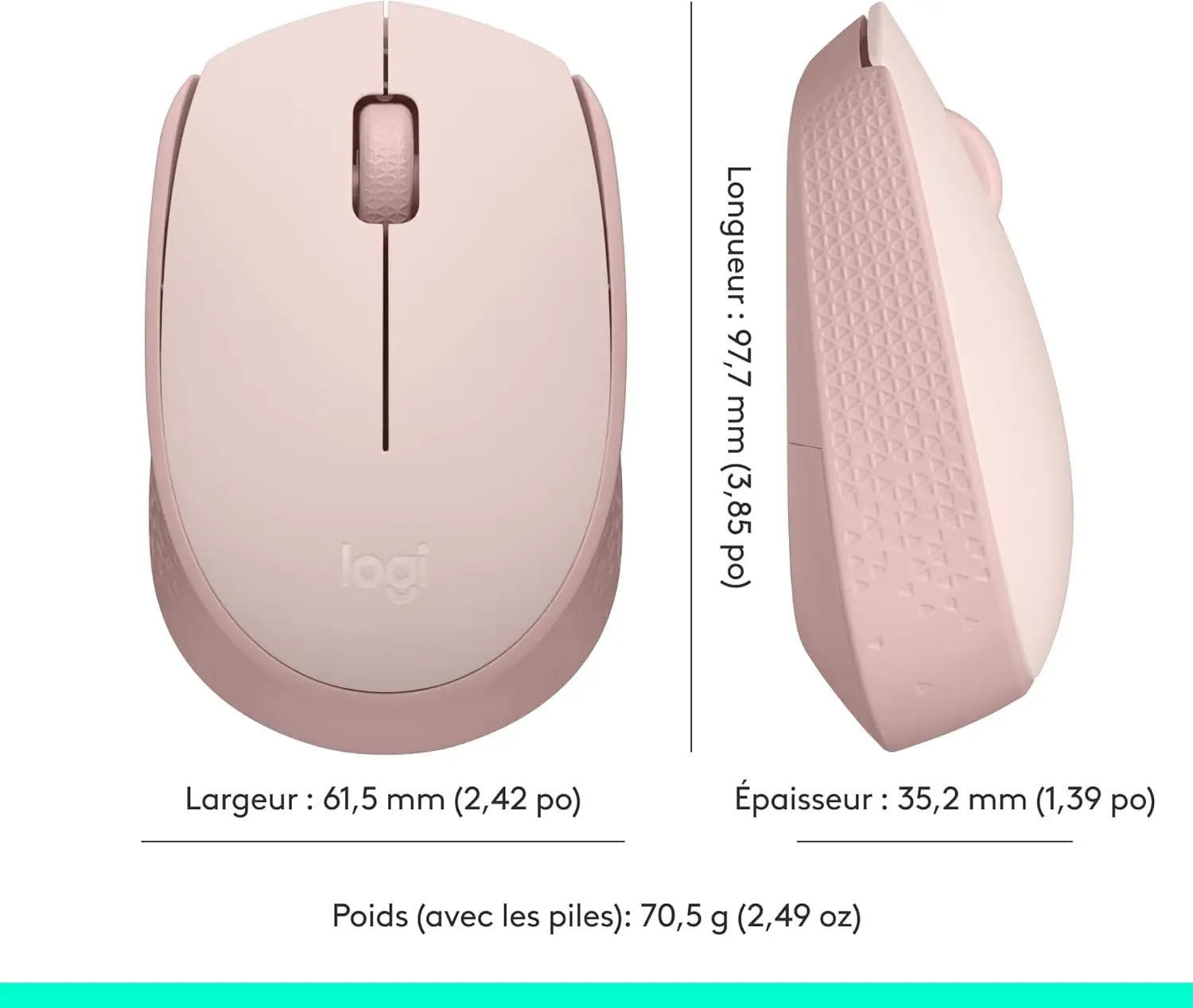 Logitech M171 – roosa ja kompaktne juhtmevaba hiir, millel on 2,4 GHz mini-USB vastuvõtja, täpne optiline sensor, kuni 12 kuud kestev aku ning mugav kuju, mis sobib kasutamiseks nii parema- kui ka vasakukäelistele.