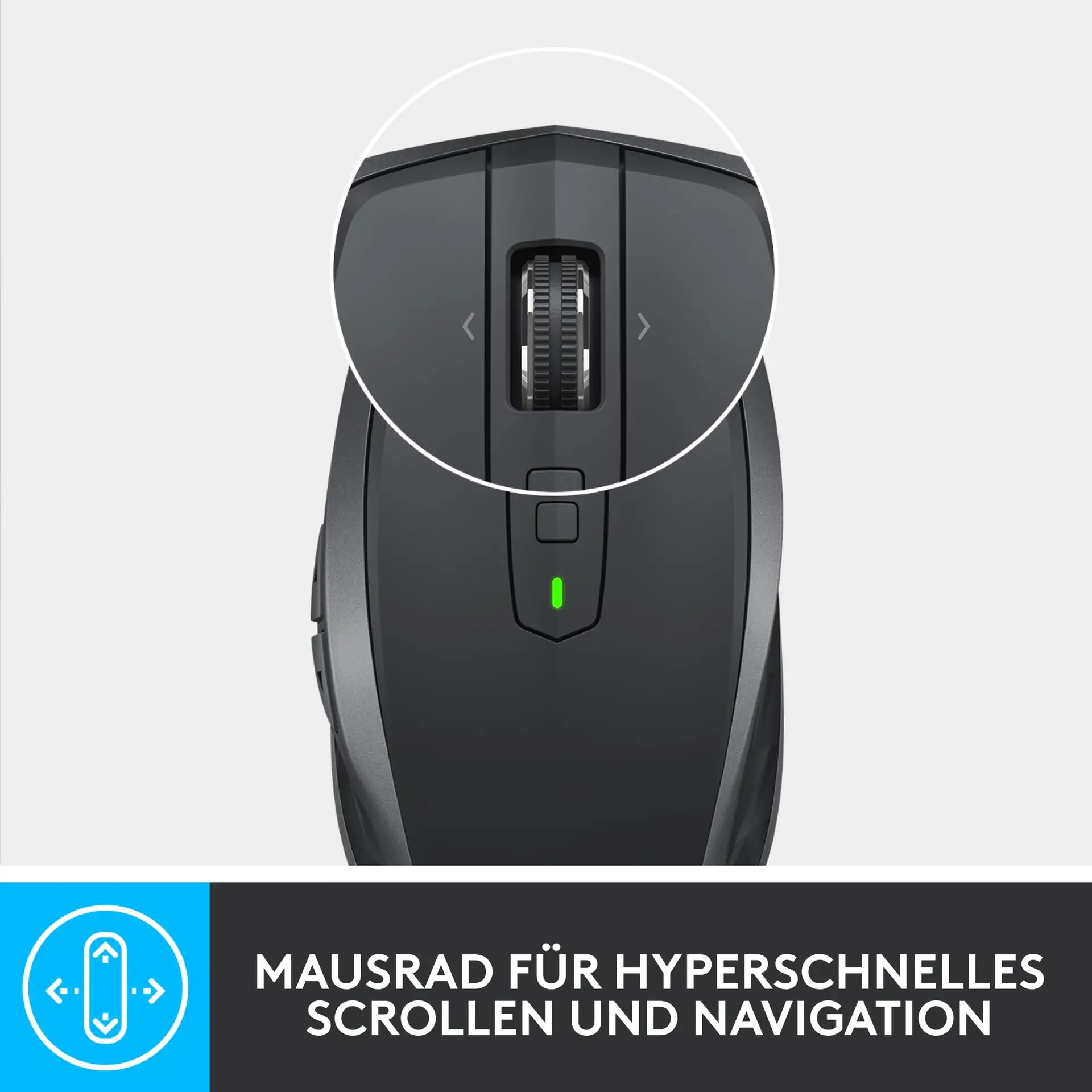 Logitech MX Anywhere 2S – kompaktne grafiithall Bluetooth-hiir, mis töötab pea igal pinnal, pakub ülikiiret kerimist ja on laetava akuga ning võimaldab sujuvat ühendust kuni kolme arvutiga samaaegselt.