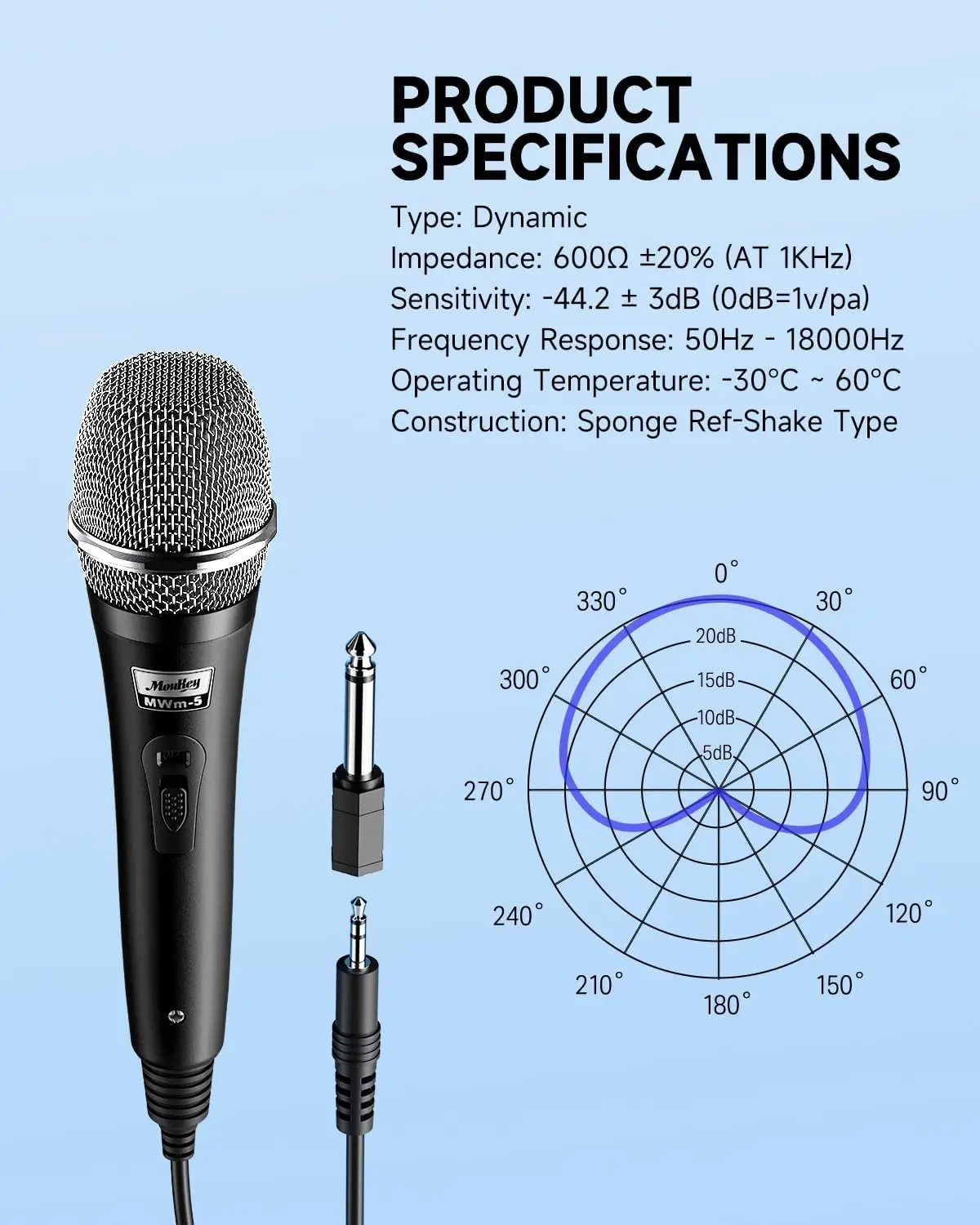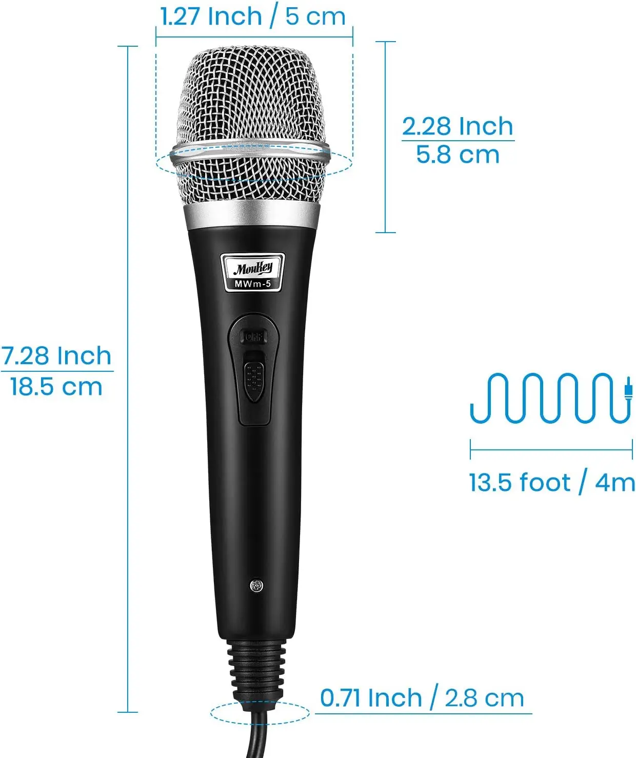 Moukey dünaamiline käsimikrofon (Must) – vastupidav metallkorpusega karaoke- ja lavamikrofon, millel on 4-meetrine XLR-kaabel ning lai ühilduvus kõlarite, võimendite ja mikserpultidega.