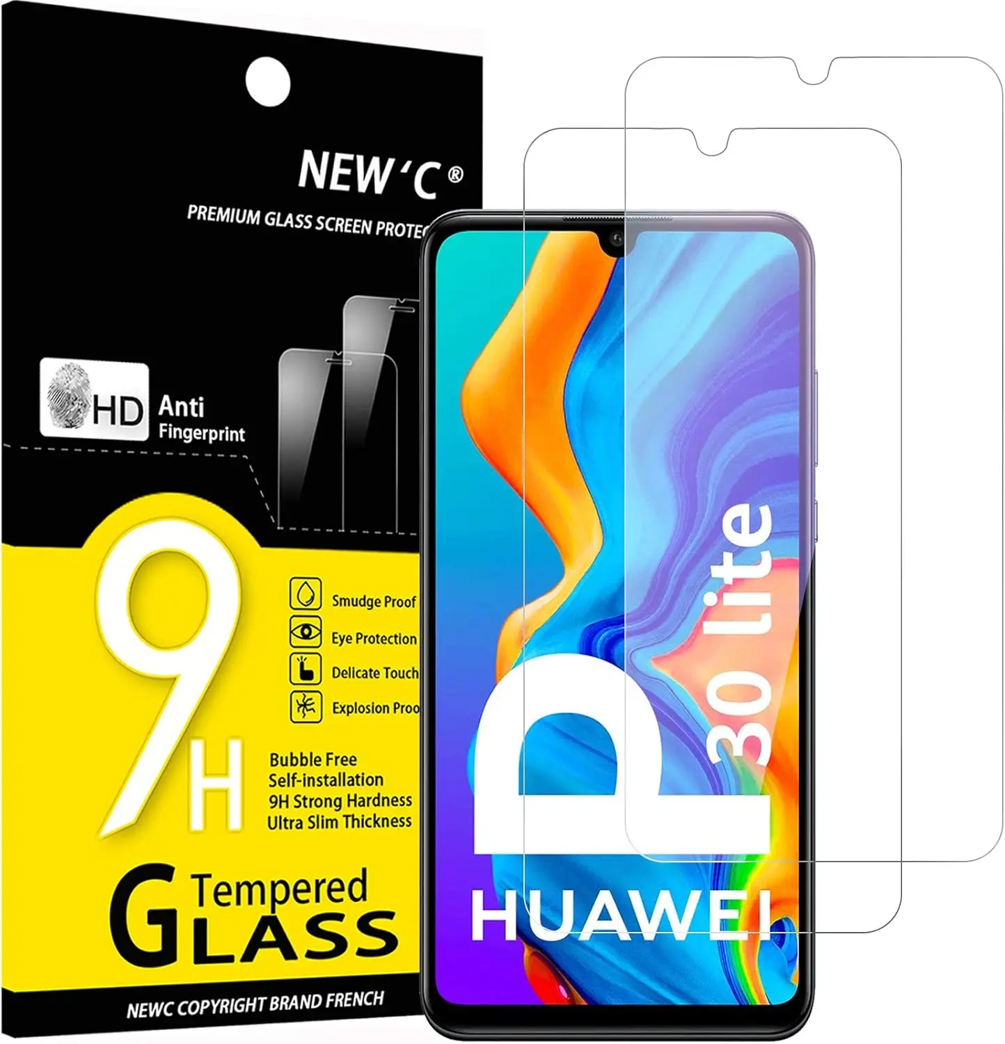 This NEW'C 2-pack for the Huawei P30 Lite features 9H hardness, 0.33mm ultra-clear tempered glass screen protectors designed to be resistant to scratches, fingerprints, and oil while maintaining HD display quality.