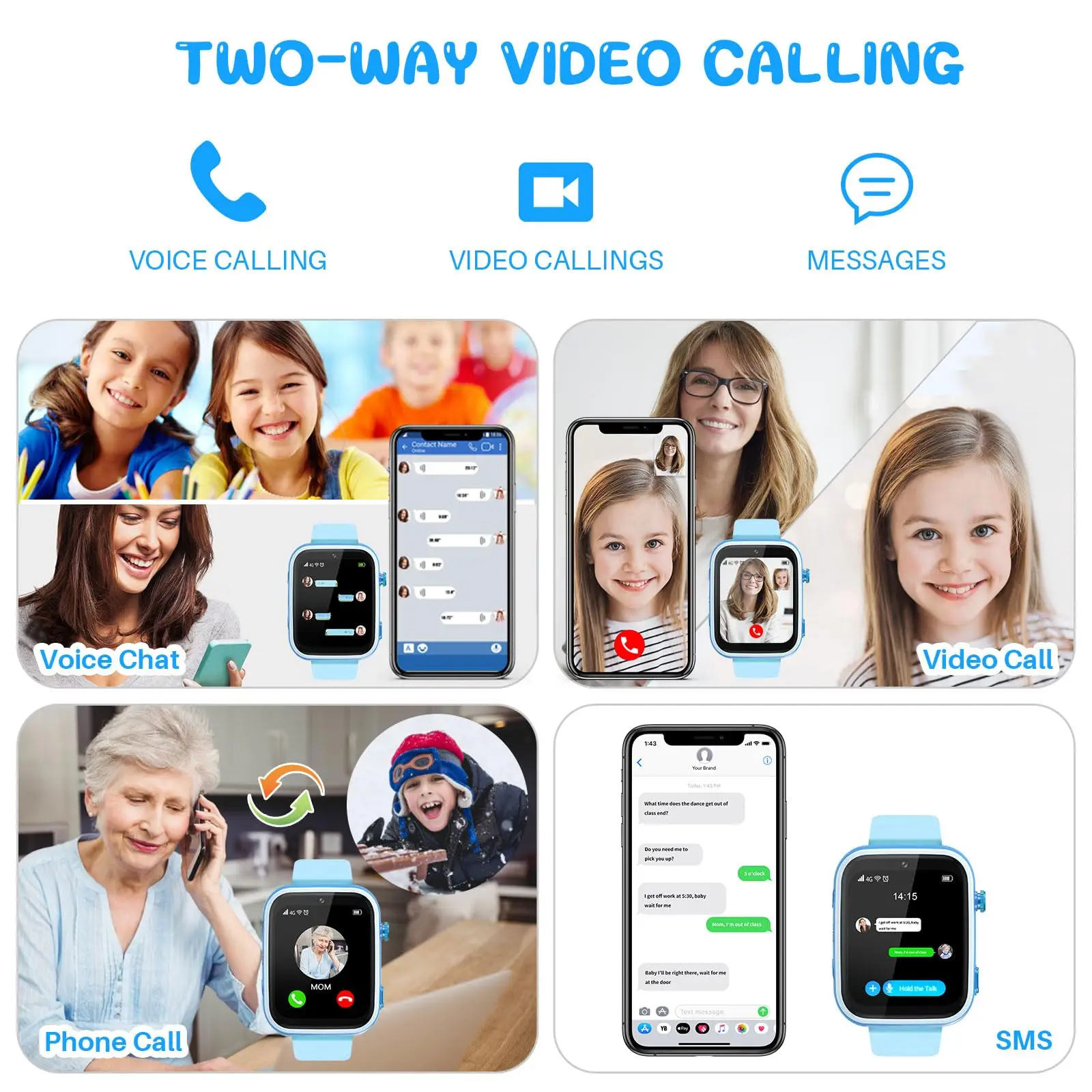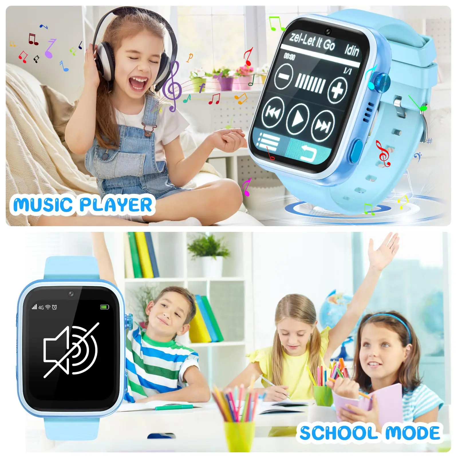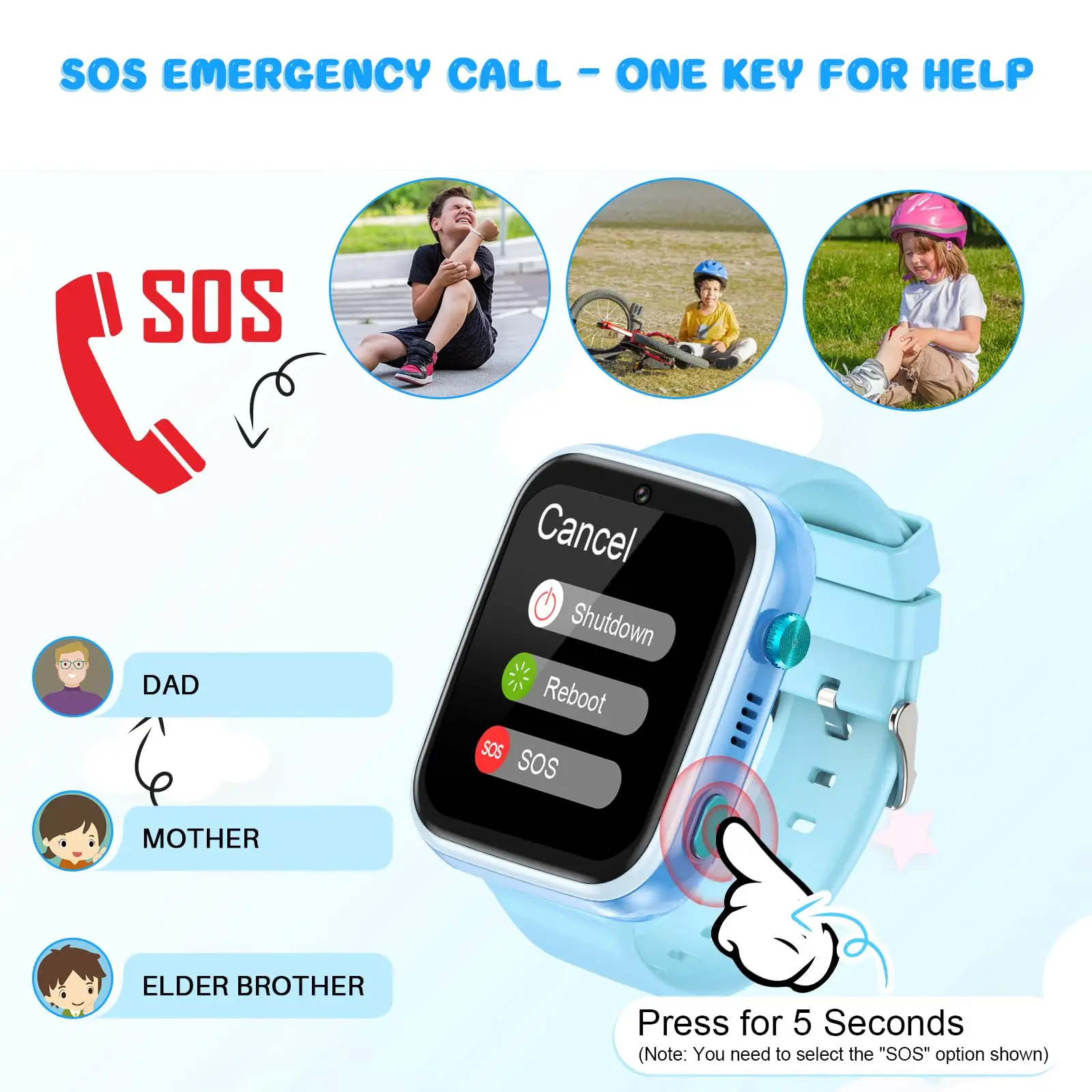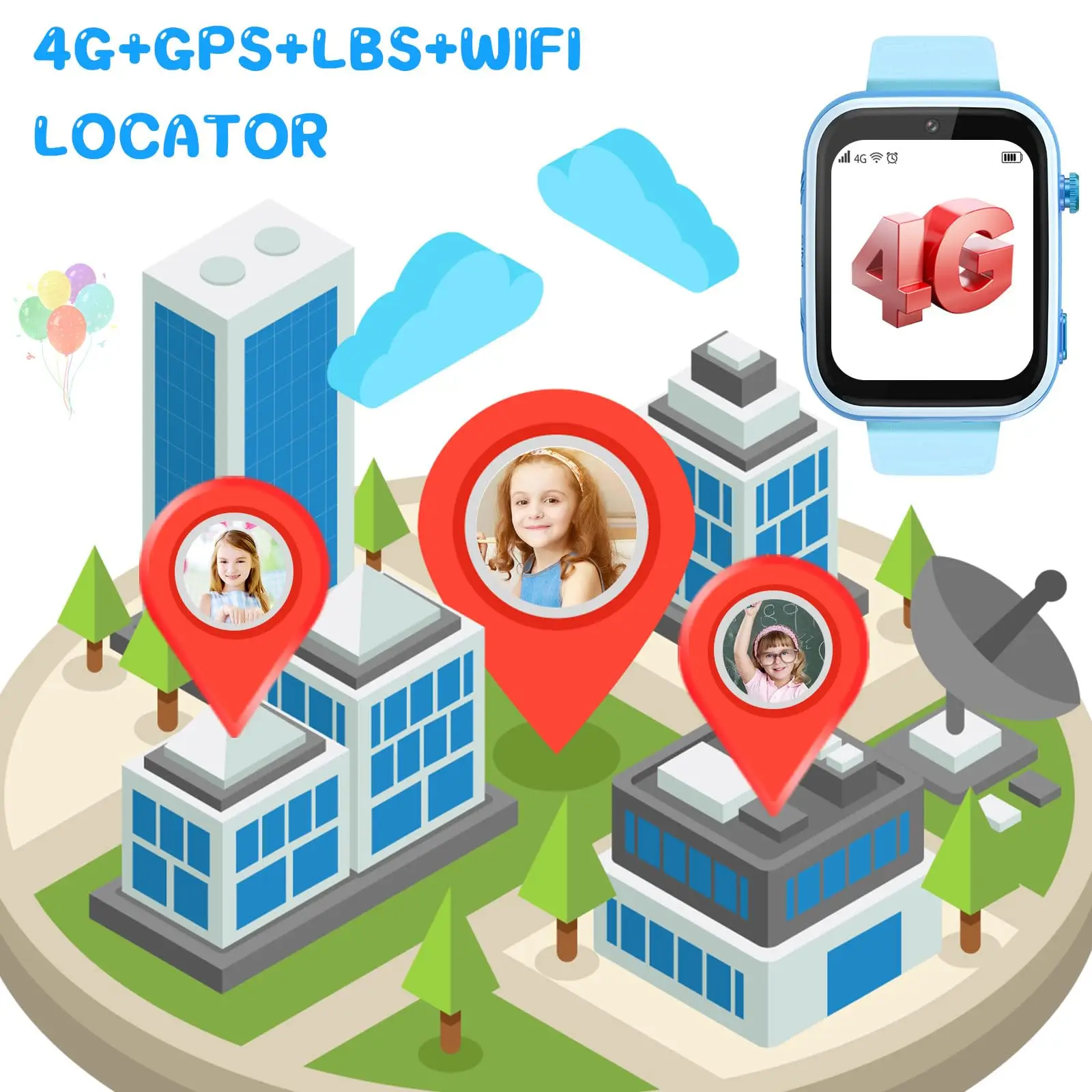 OKYUK 4G Kids Smartwatch (T45 Blue) – blue smartwatch with GPS tracking, two-way calls, SOS button, Wi-Fi and waterproof touchscreen, multiple watch face styles, designed for boys and girls ages 4–12.