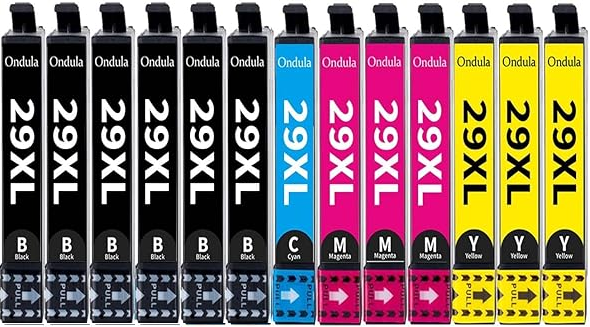 Ondula 29XL printer cartridges multipack – 13-pack (6× black, 1× cyan, 3× magenta, 3× yellow) compatible with Epson 29XL for Epson XP-342, XP-332, XP-345, XP-352, XP-442, XP-445, XP-455, XP-432, XP-245, XP-235, XP-335, XP-435 and XP-247 printers, delivering vibrant color and quality prints.
