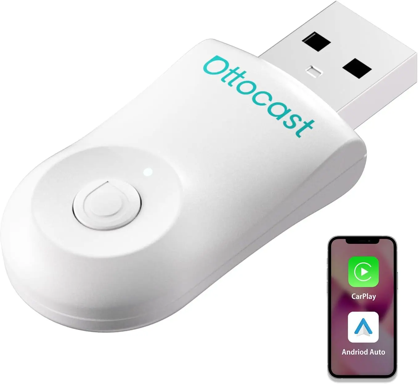 Ottocast Mini Juhtmevaba Android Auto Ja Carplay Adapter- Valge