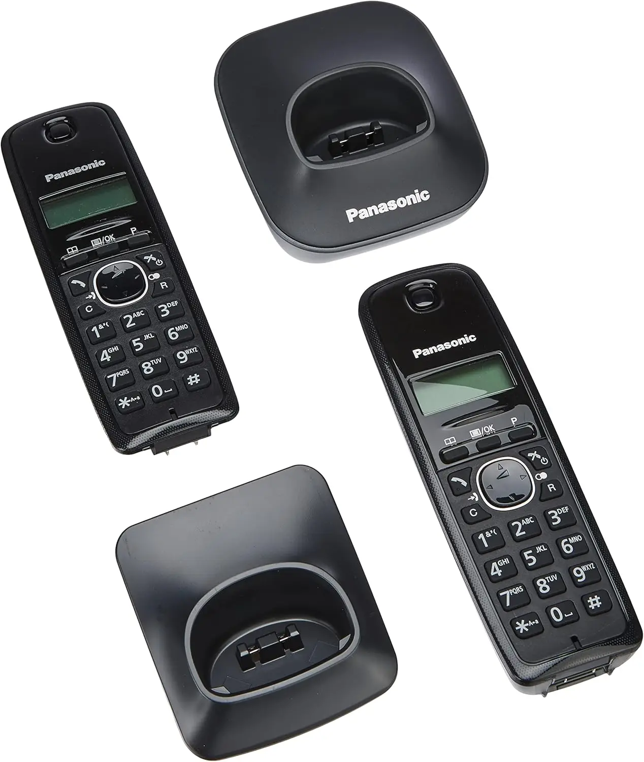 Panasonic KX-TG1612 (Must) – kahe toruga DECT juhtmevaba lauatelefoni komplekt, millel on selge LCD-ekraan, 50 nimega telefoniraamat, kordusvalimine ja kuni 15-tunnine kõneaeg (toiteallikaks AAA laetavad akud).