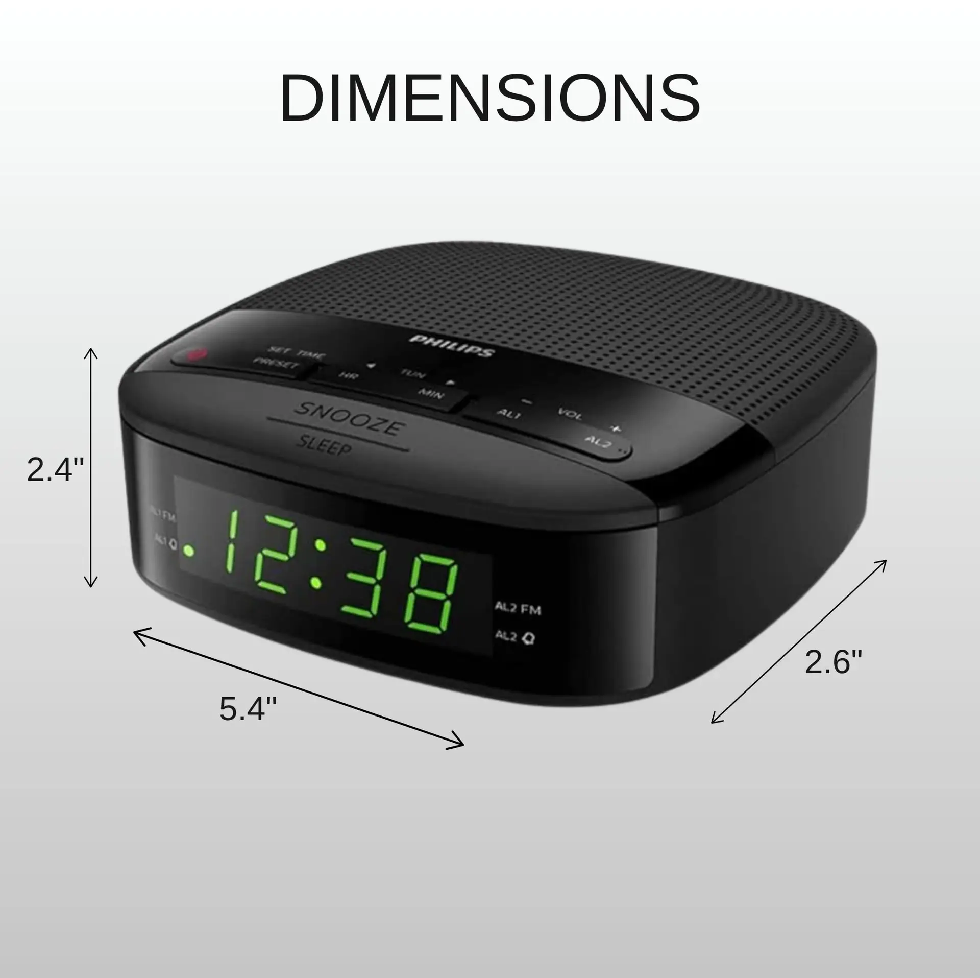 Philips Audio TAR3205/12 – alarm clock with FM radio, dual alarm, sleep timer and compact design, delivering clear sound and convenient wake-up features for home use.