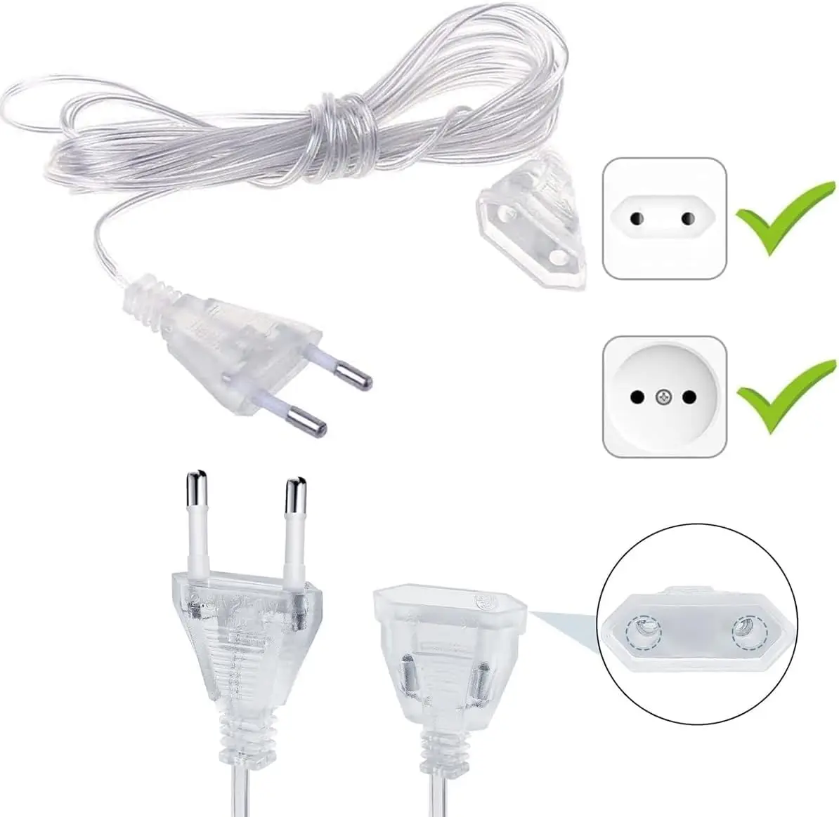 COMVASTARS 2 pikenduskaabli komplekt, õhuke kaabel, europistikuga pikendusjuhe 5 m, toitepikendusjuhe, elektriline lameda juhtmega pikendusjuhe LED-laternate ja õues kasutamiseks (5 m)