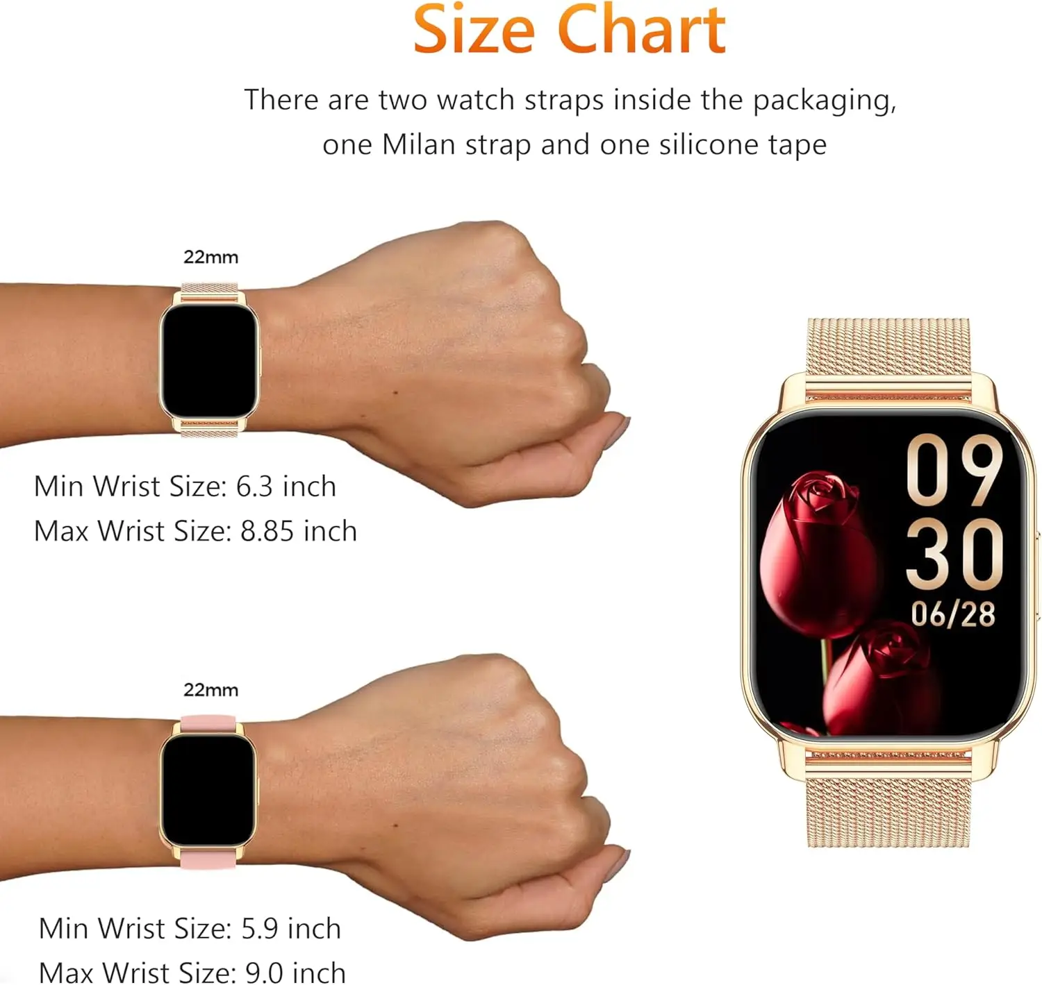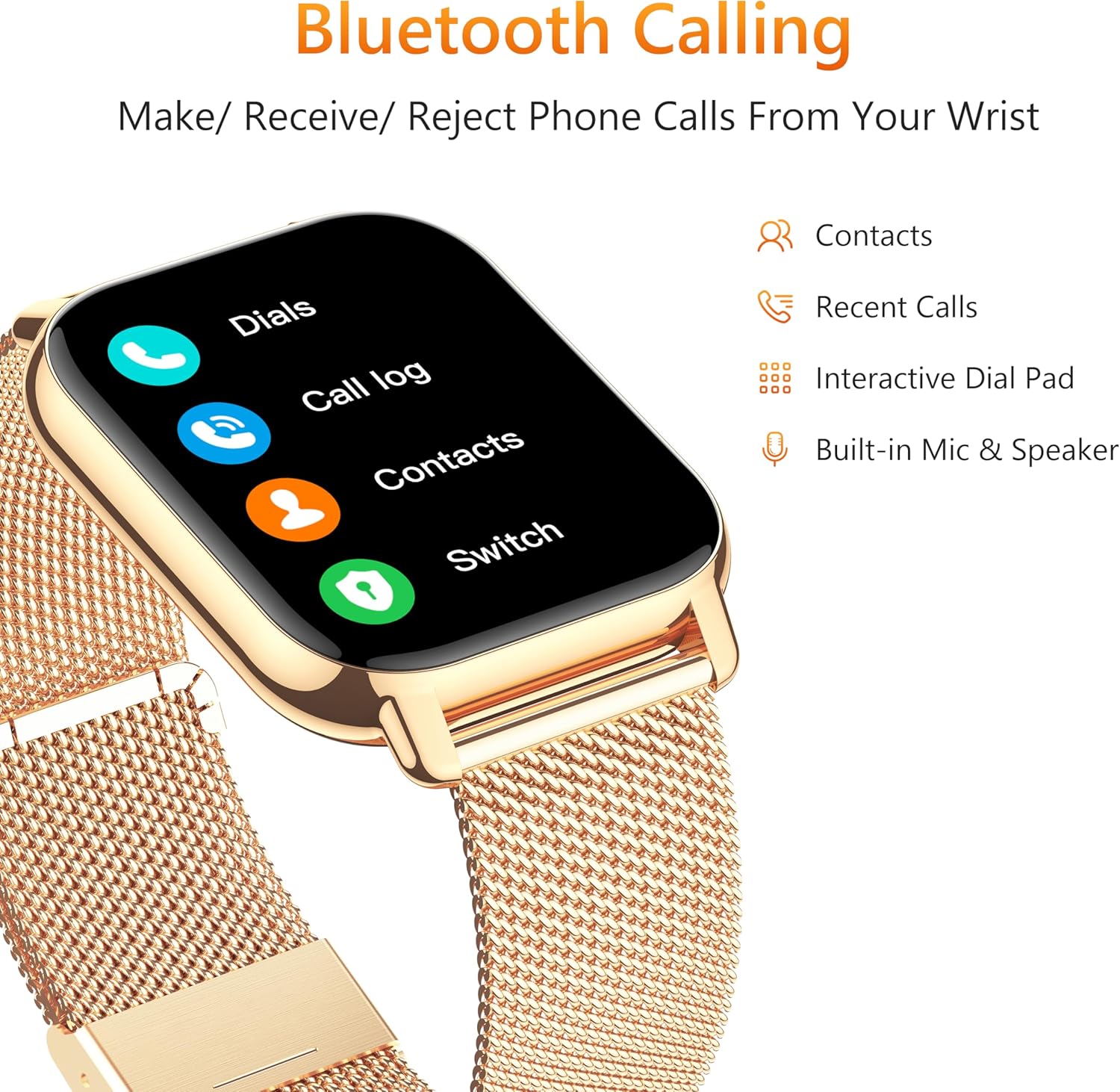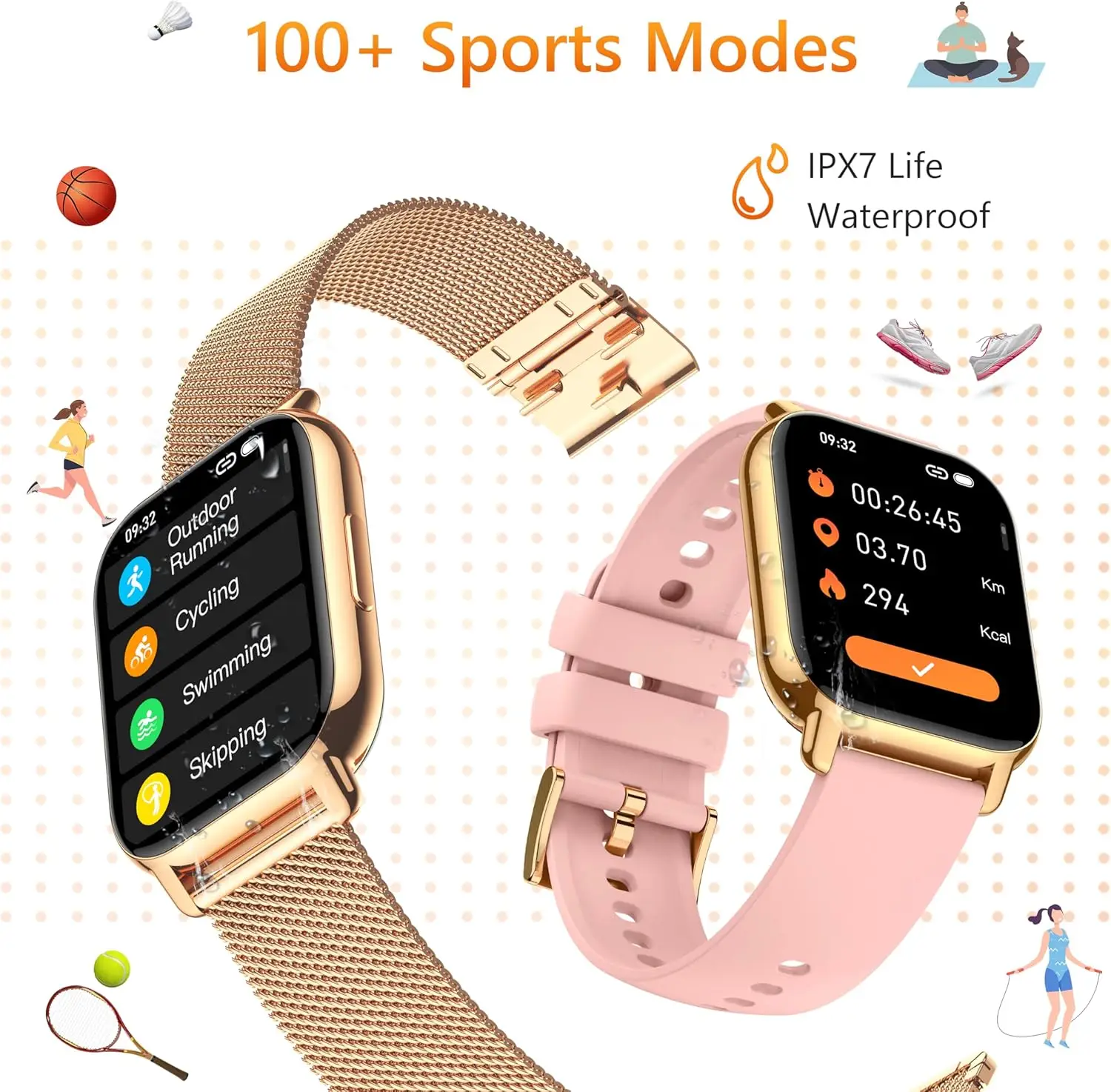 Popglory Smart Watch – a 2-inch touch colour display fitness tracker featuring phone call functionality, blood pressure and heart rate monitoring, SpO2 tracking, sleep analysis, and IPX8 waterproofing.