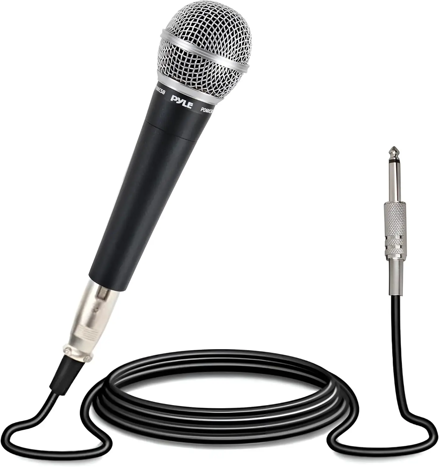 Pyle professional microphone – dynamic unidirectional cardioid mic for karaoke and singing, with a 457 cm XLR cable and 0.635 cm (6.35 mm) audio connection, delivering clear, focused vocal performance with minimal feedback.