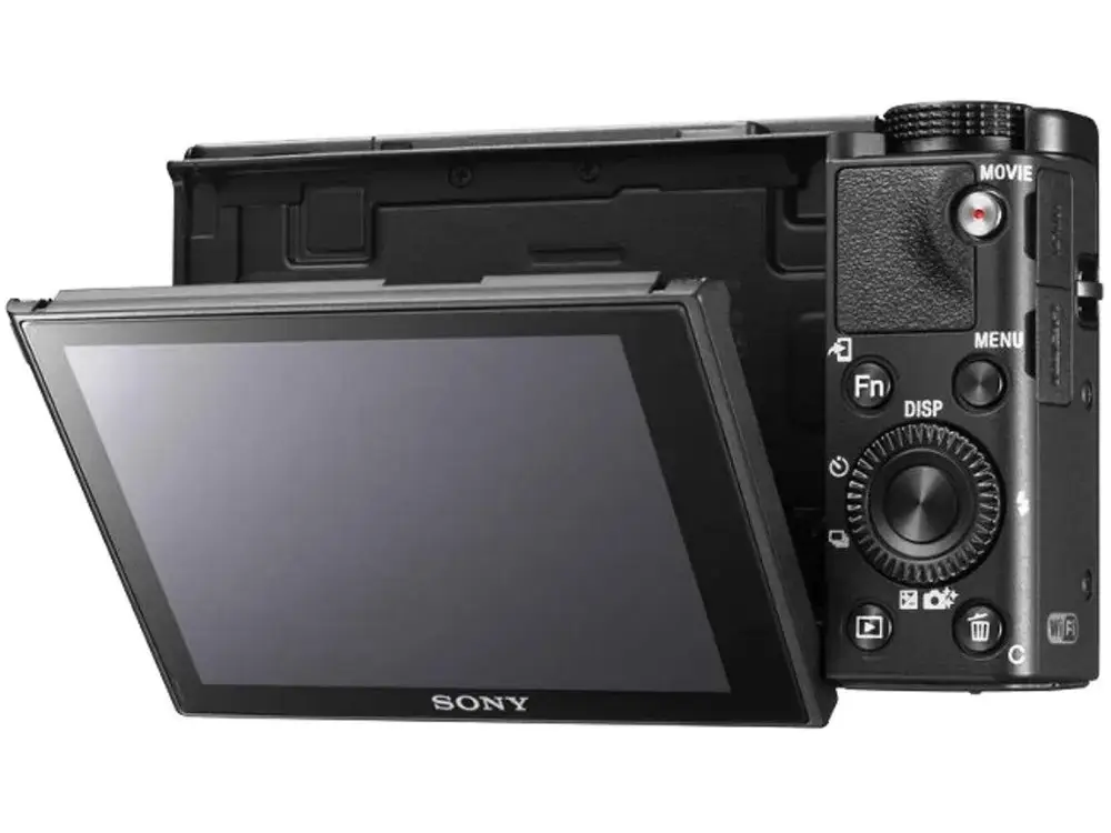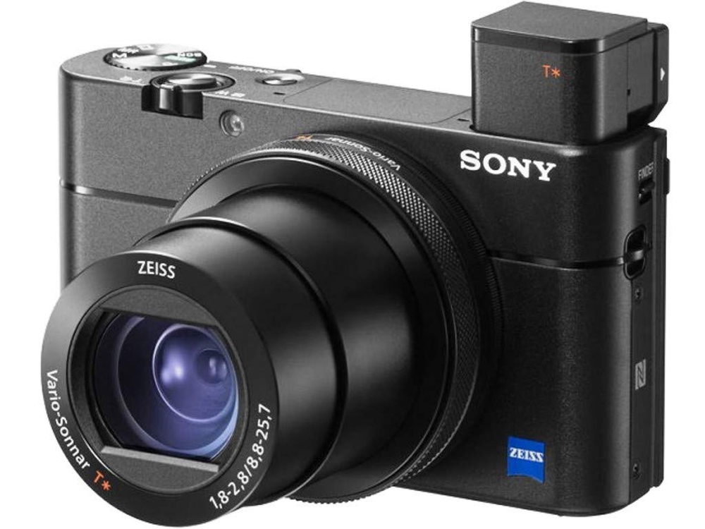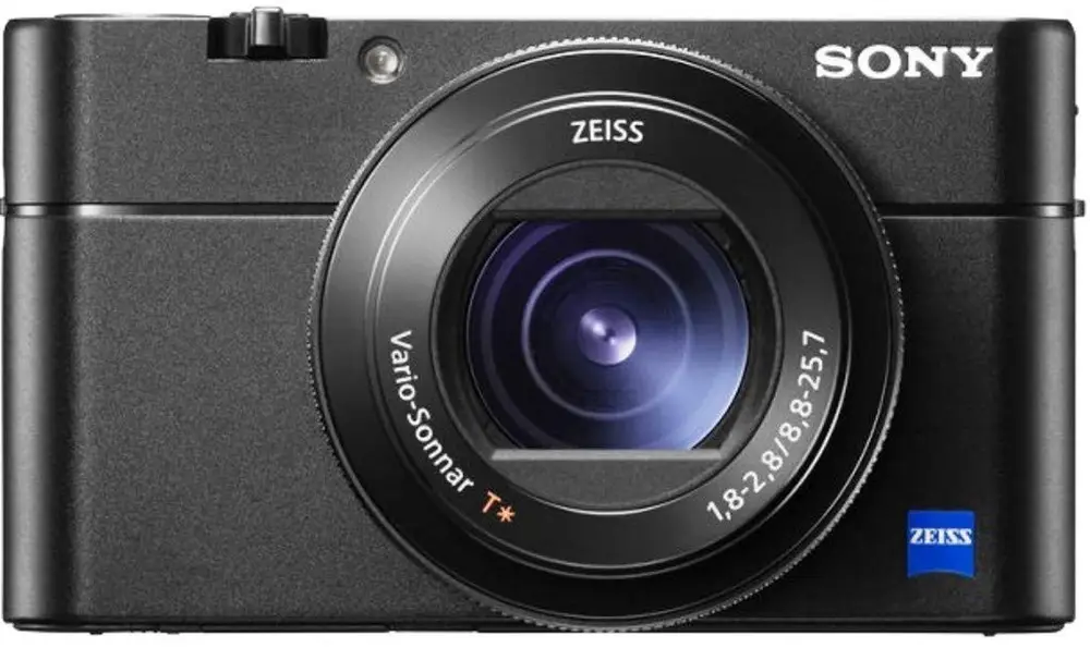 Kaamera kahes nurgas väiksed täkked. Sony DSC-RX100V Kompaktne kaamera 20.1MP Tüüp 1.0 Exmor RS CMOS Sensor DRAM kiibiga, 0.05s Kiire Hübriid Autofookus, Jätkuv Pildistamine kuni 24fps, 4K Video, Super Aeglane Liikumine kuni 960fps ja ZEISS Vario-Sonnar T* Objektiiv 0.945-2756 koos avaga F1 .8-2.8 Pakendi sisu 1 x Laetav aku NP-BX1, 1 x AC adapter AC-UUD12, 1 x mikro-USB kaabel, 1 x rihm, 1 x rihmaadapter, 1 x kasutusjuhend, 1 x objektiiv