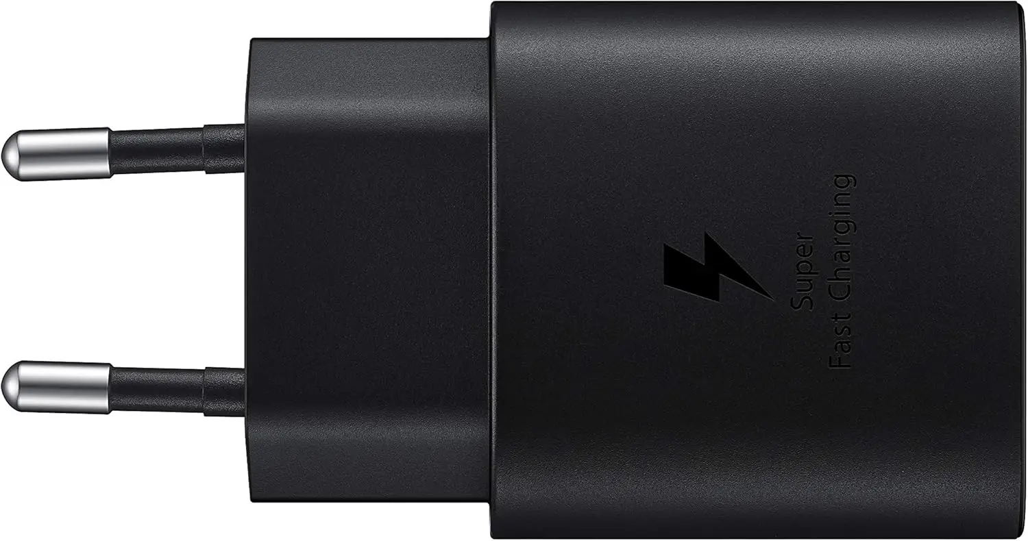 This original black Samsung 25W USB-C wall charger provides ultra-fast and secure power delivery for your devices in a compact, cable-free design.