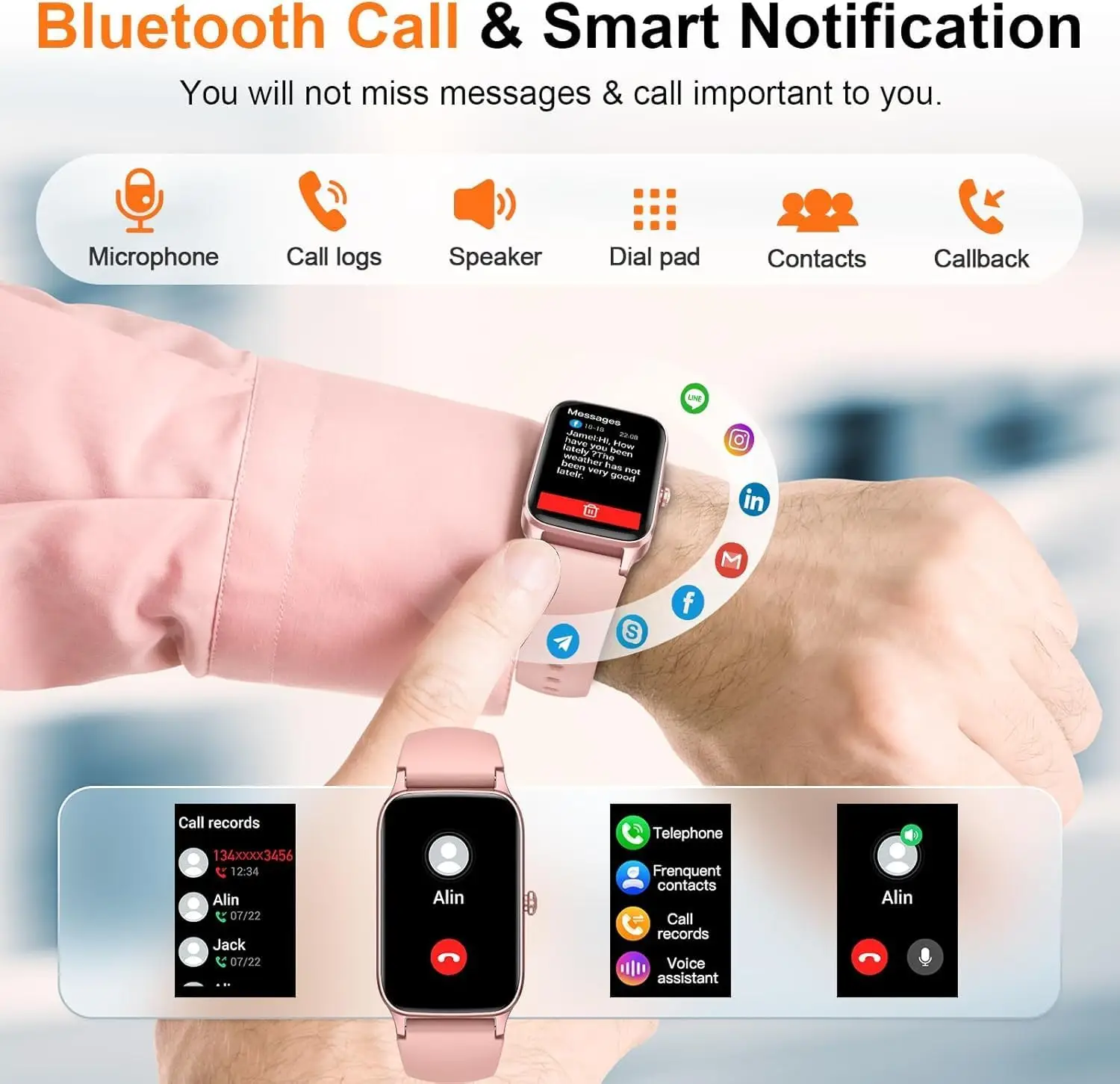 Soudorv P97 nutikell – roosa Bluetooth-kõnedega nutikell meestele ja naistele, mis on varustatud pulsianduri, unejälgimise funktsiooni ja selge puuteekraaniga tervise ning teavituste jälgimiseks.