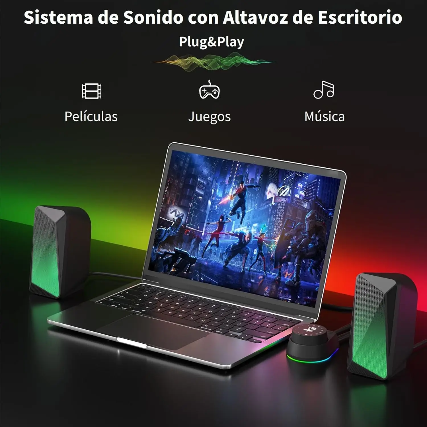 USB toide, värviline LED-valgustus. 10w ja 80Hz.