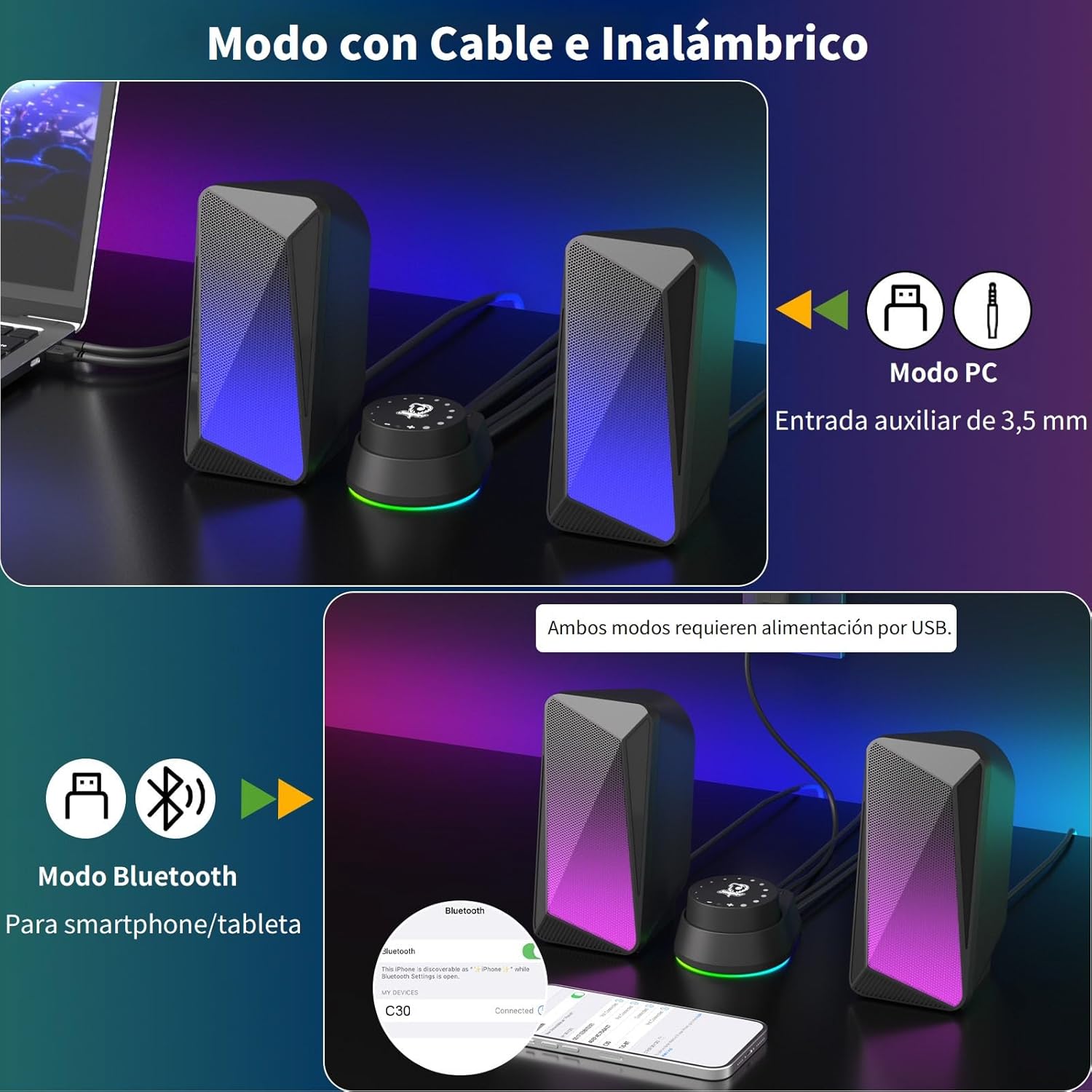 SOULION C30 Stereo 2.0 Bluetooth kõlarid arvutile, sülearvutile, monitorile, mängimisele, mängukõlar, must, 3,5 mm abisisend,
