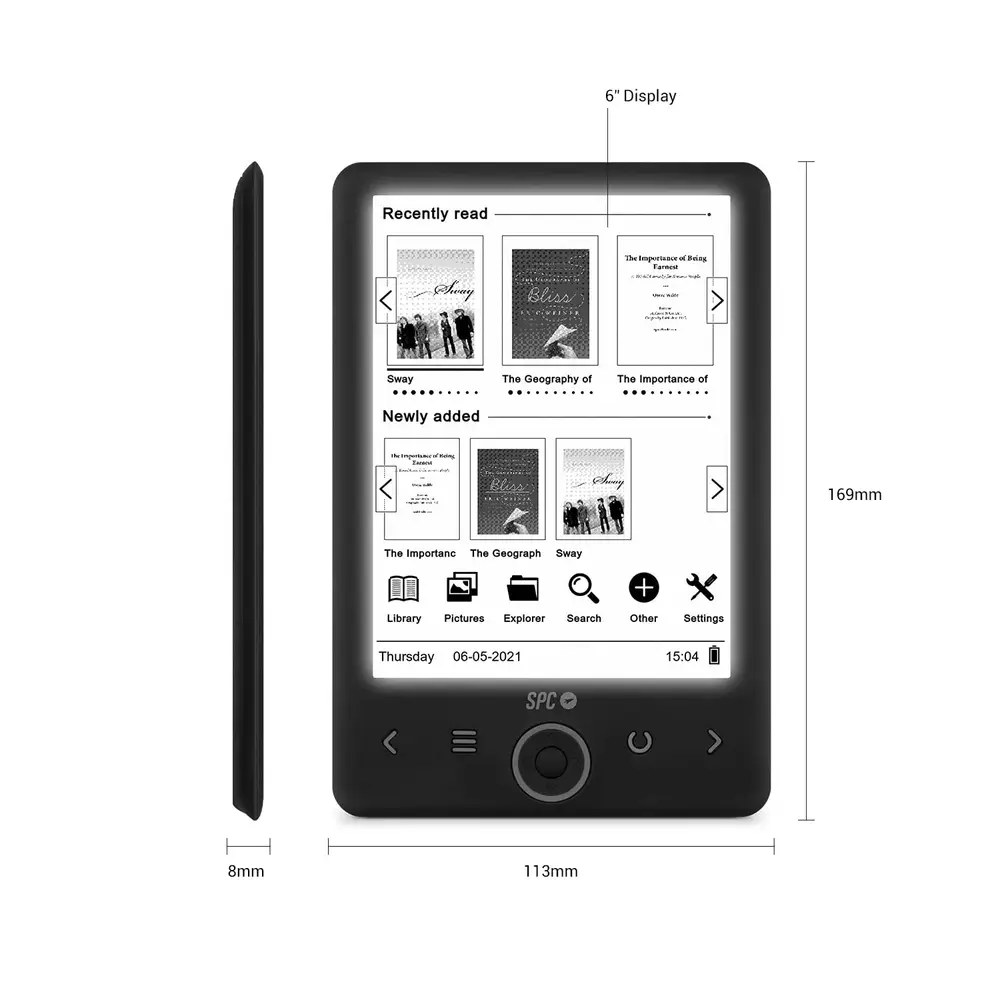 SPC Dickens Light 2 must e-luger pakub mugavat lugemiskogemust 6-tollise E Ink ekraani ja reguleeritava taustvalgustusega. Kerge ja vastupidav seade, mis sobib suurepäraselt lugemiseks nii kodus kui teel olles.