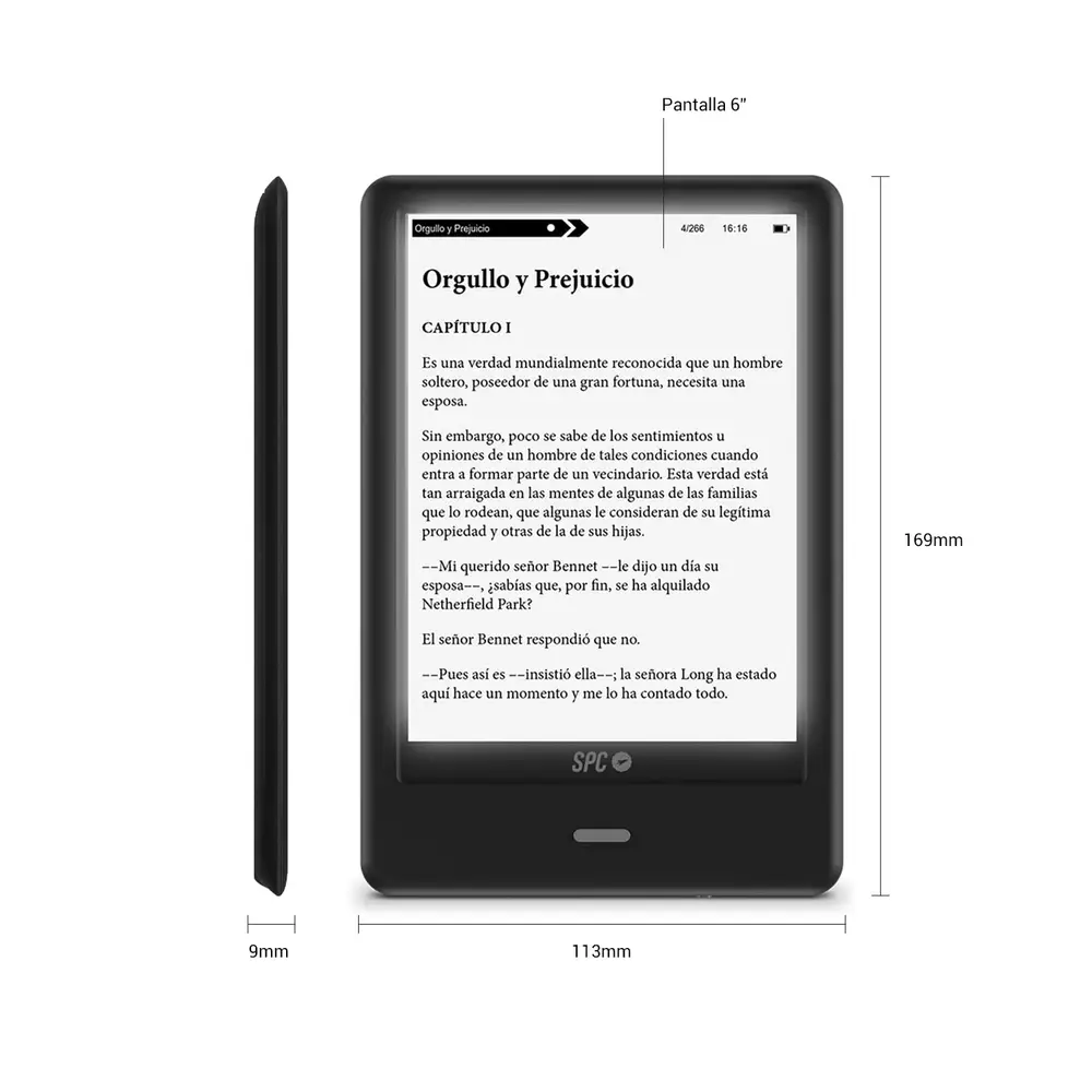 SPC Dickens Light Pro must e-luger pakub selget ja silmasõbralikku lugemiselamust 6-tollise E Ink ekraani ja reguleeritava taustvalgustusega. Kerge ja kompaktne disain teeb sellest ideaalse kaaslase lugemiseks igal pool.