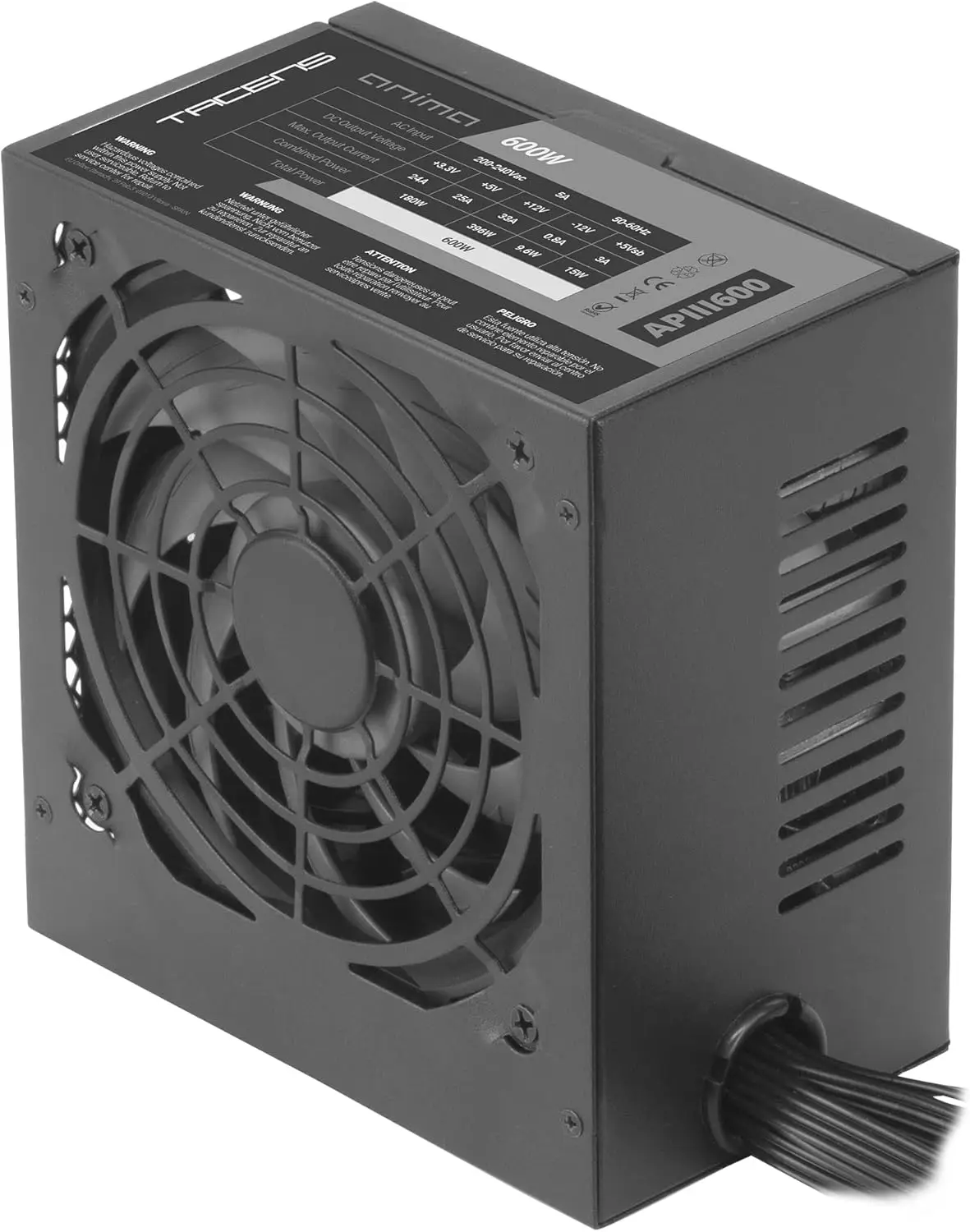 Tacens Anima APIII600 (600W) – an ATX power supply featuring SMD technology for 85% efficiency (Bronze level), an ultra-quiet 12cm fan, and a stable +12V rail for reliable PC performance.
