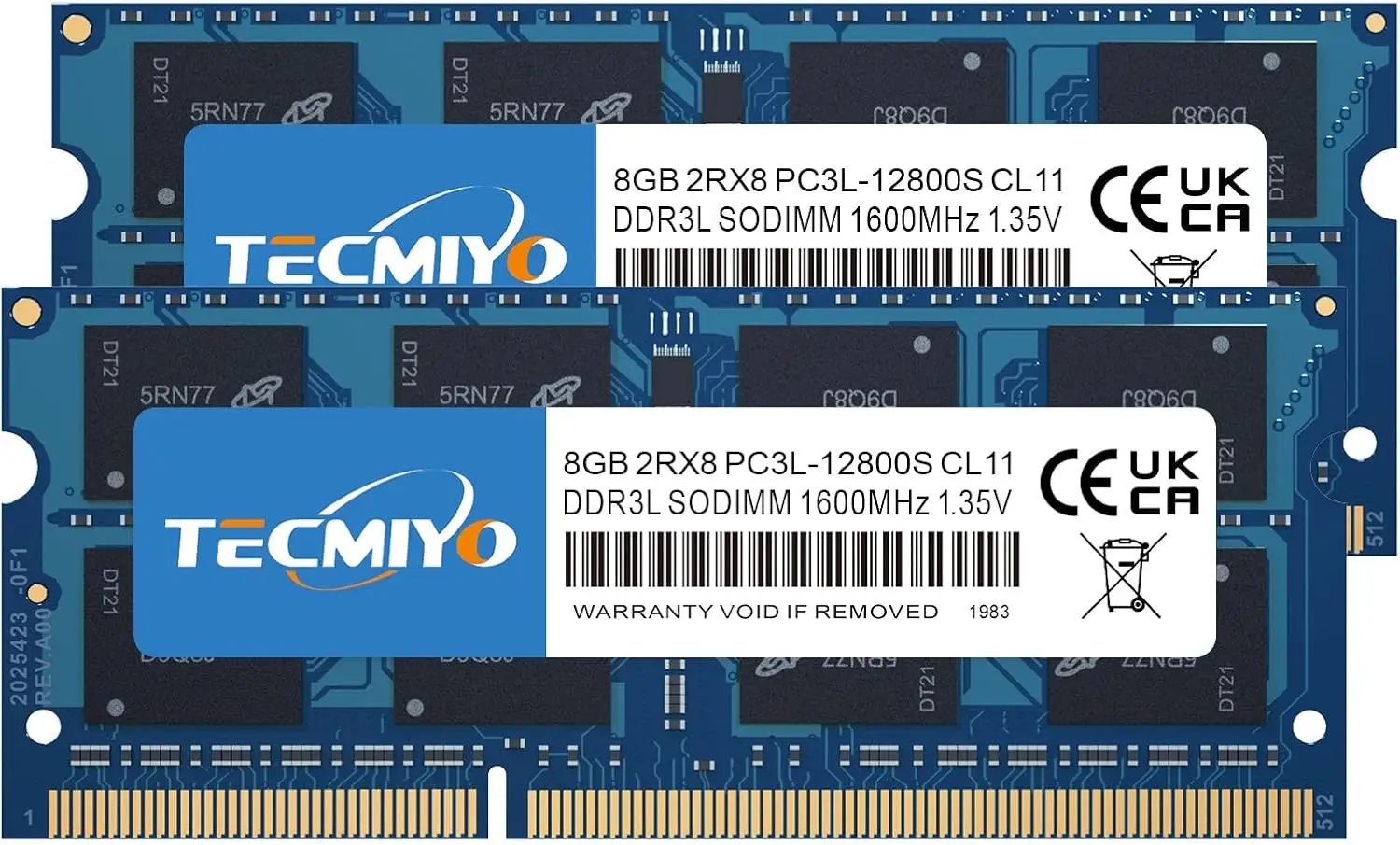 TECMIYO 16GB Kit (2 x 8GB) PC3L-12800S 2RX8 Dual Rank DDR3 1600MHz SODIMM PC3 12800 1.5/1.35V CL11 204Pin Non-ECC Unbuffered Laptop RAM
