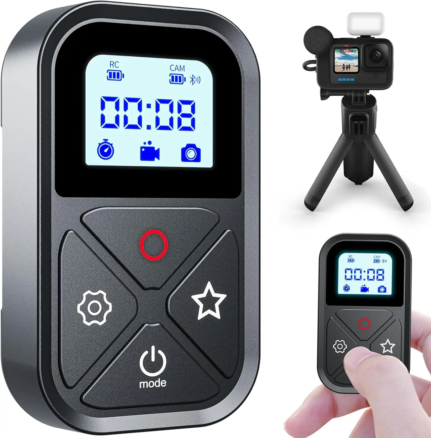 This intelligent Bluetooth remote for GoPro Hero 8 through 13 and MAX features a clear LED display, convenient magnetic charging, and a wrist strap for seamless control in any environment.